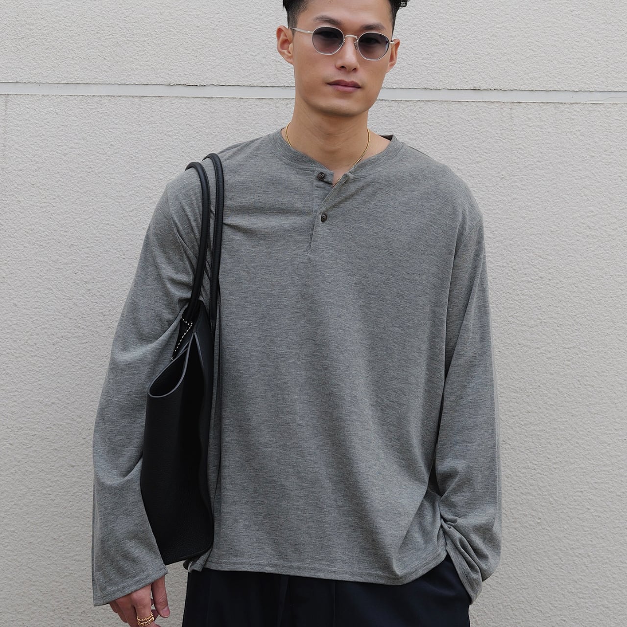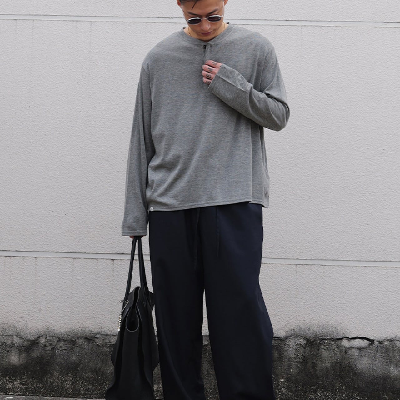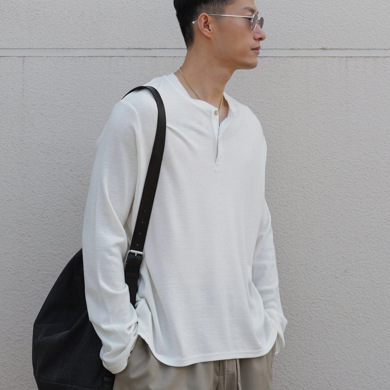 一枚でもインナー使いでも映える、静かな存在感のヘンリーネックです。