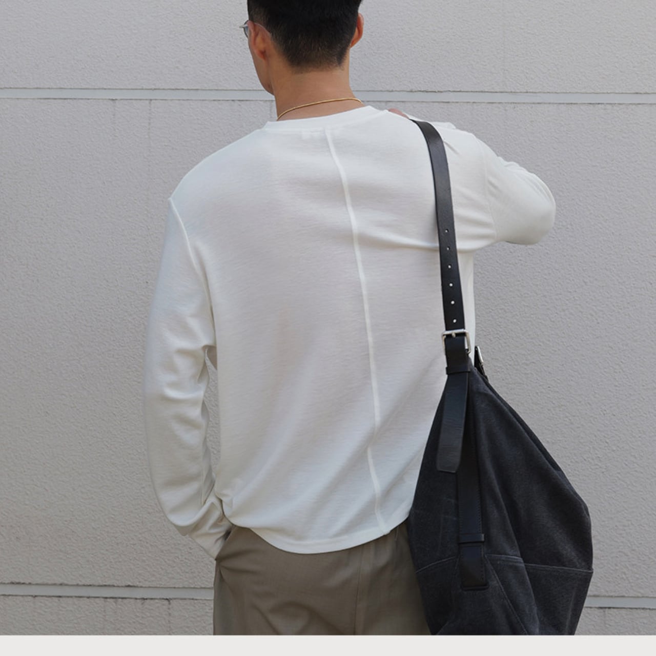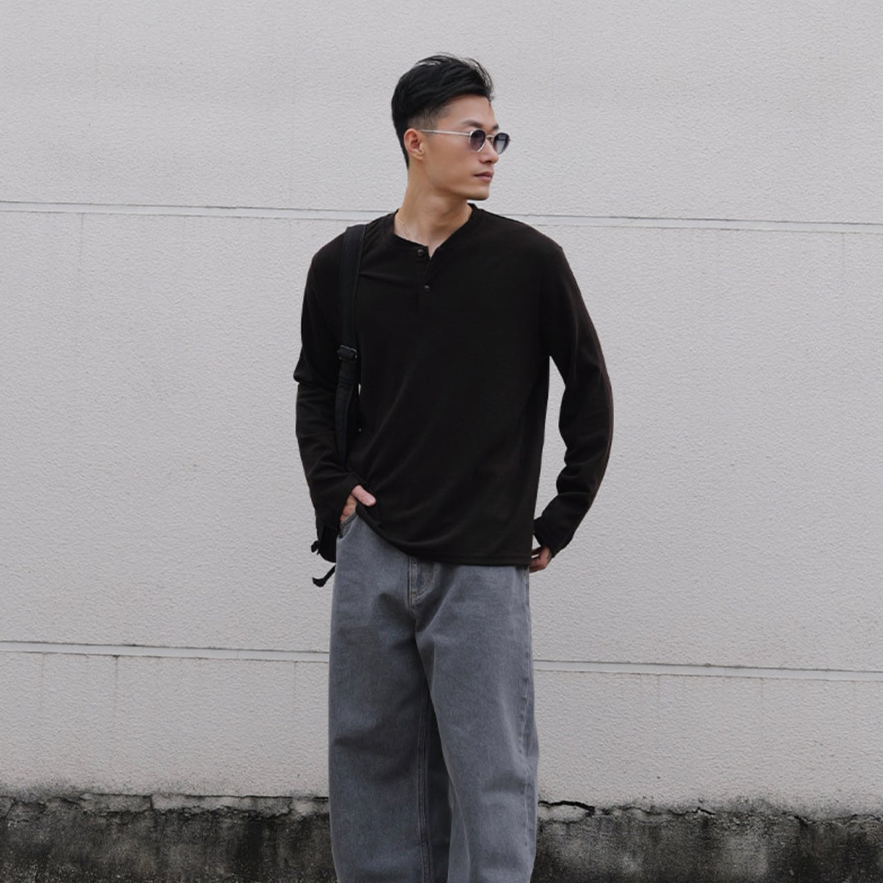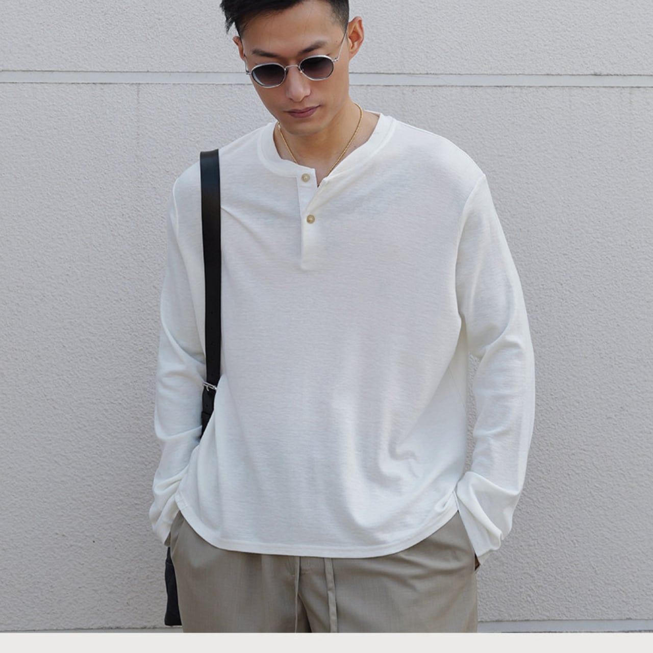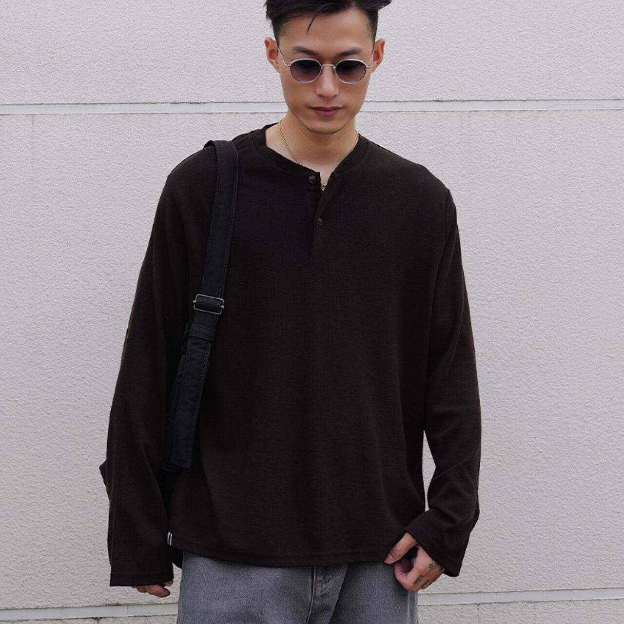 一枚でもインナー使いでも映える、静かな存在感のヘンリーネックです。