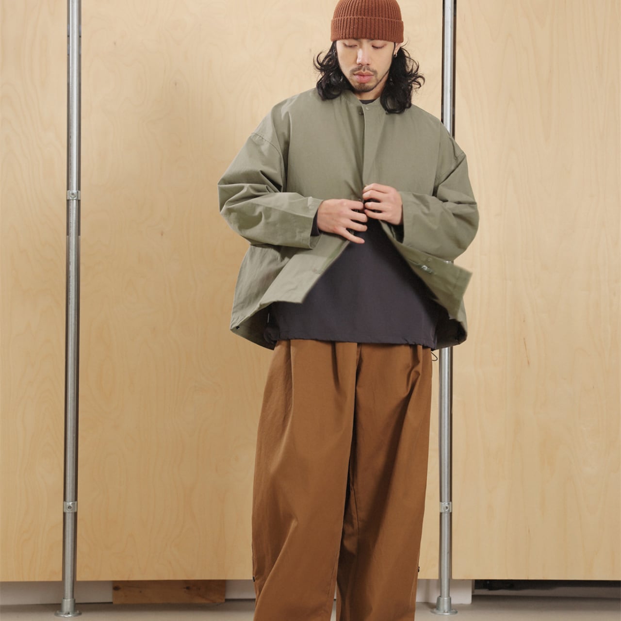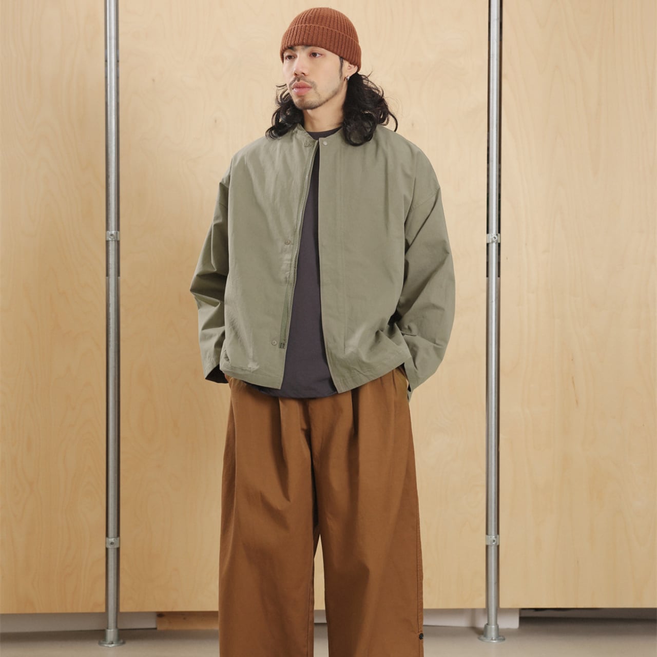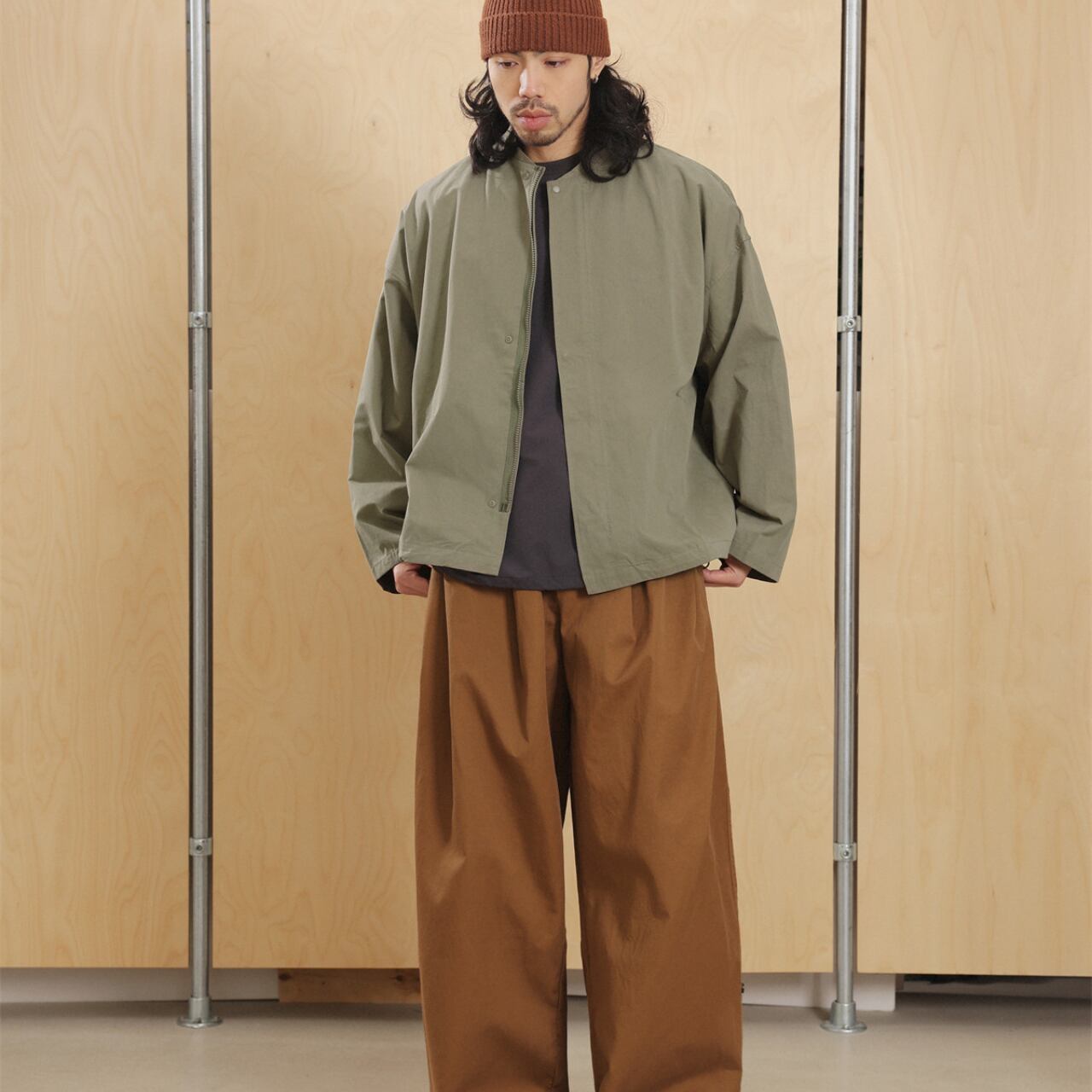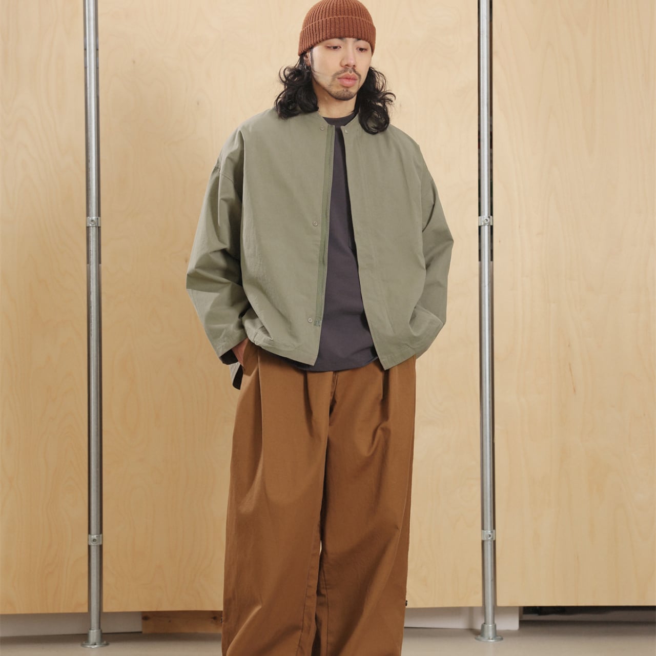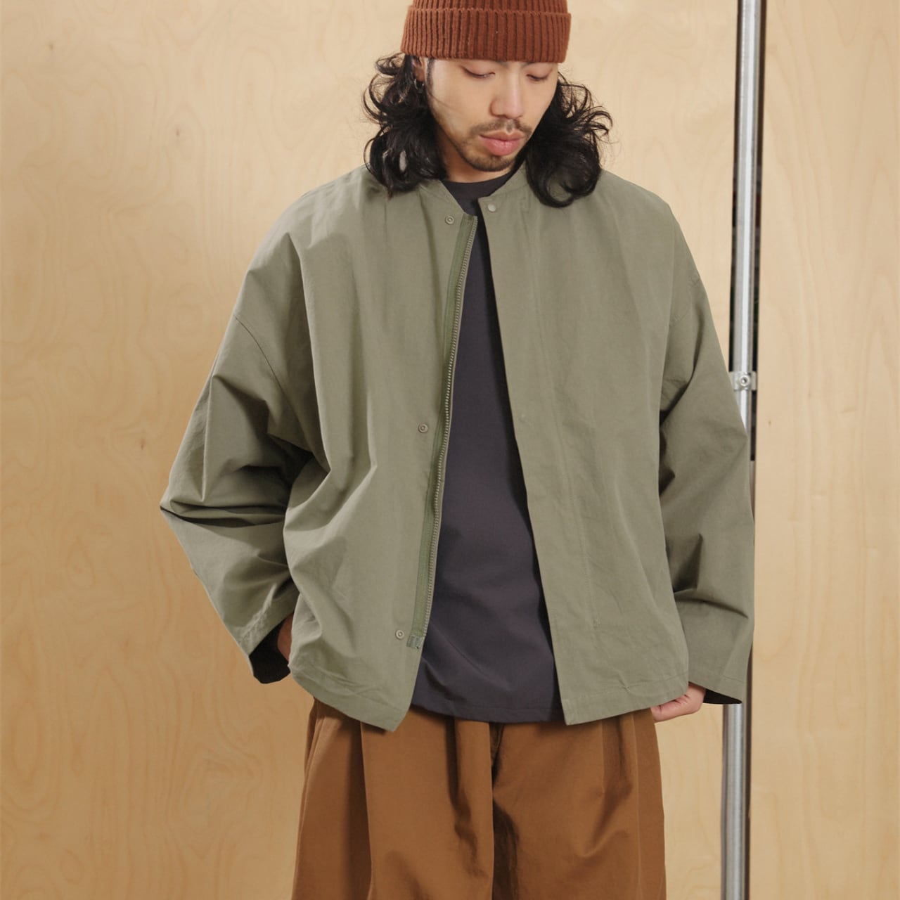 #FashionSelect #fashion #gate #ノーカラージャケット #ミニマルコーデ #cityboyootd #春アウター #ワイドシルエット #セージカラー #ストリートモード