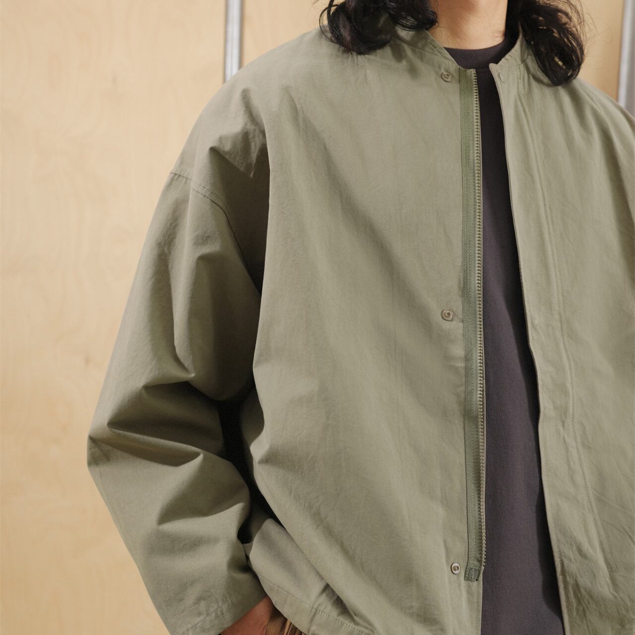 セージグリーン・ノーカラーブルゾン K5628