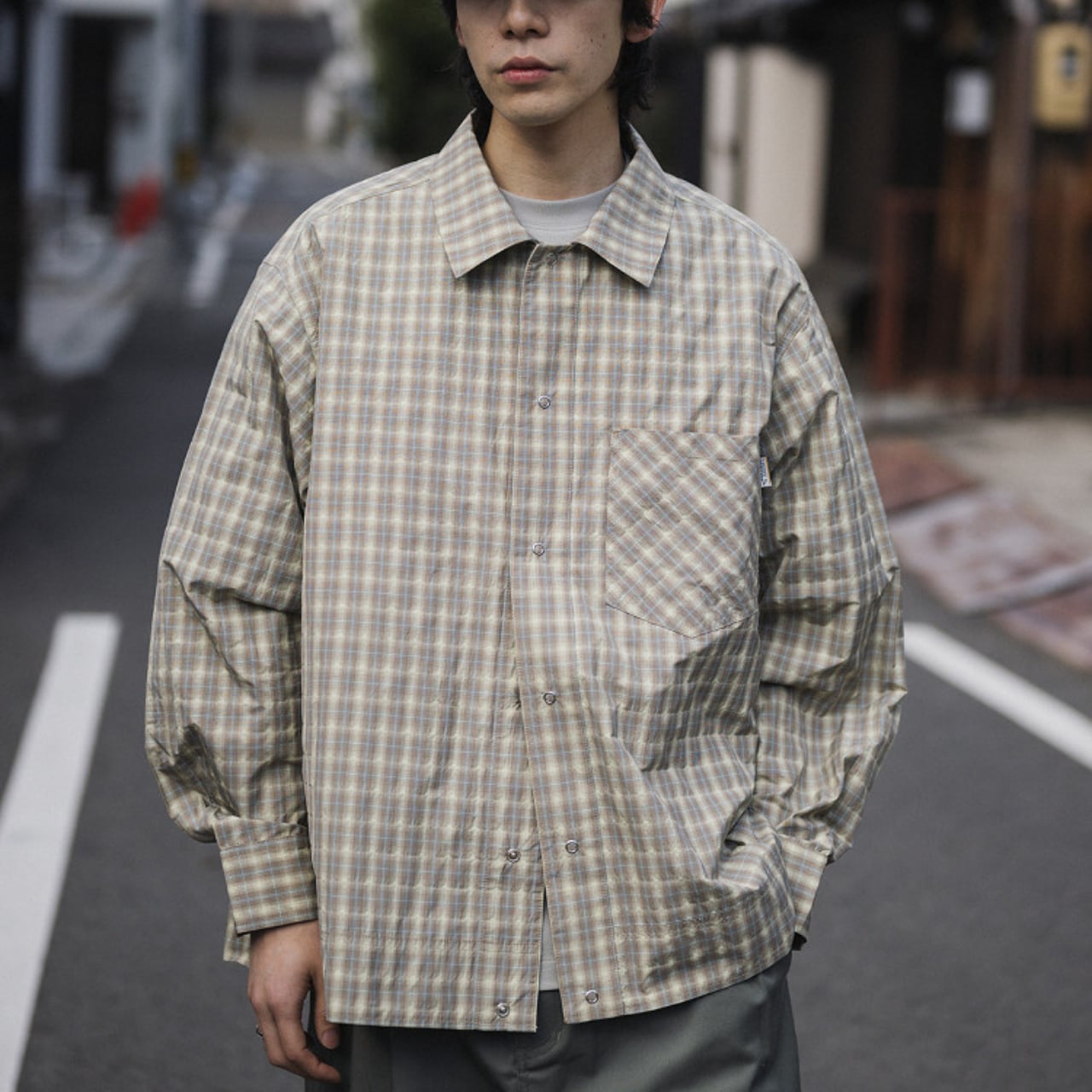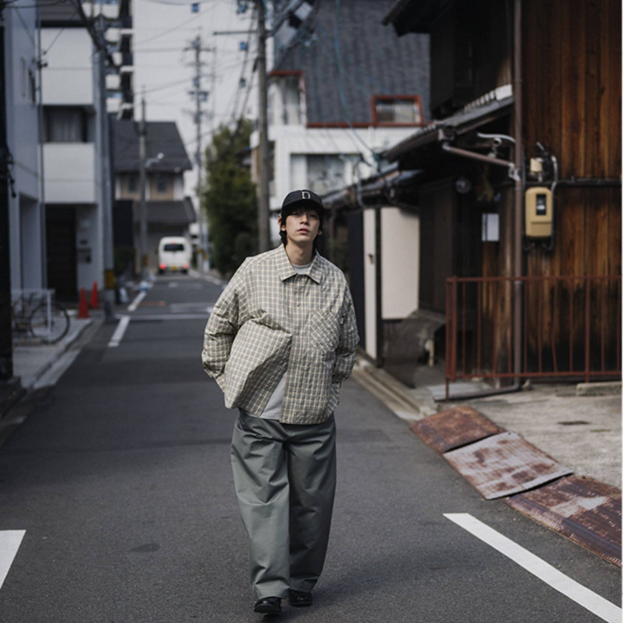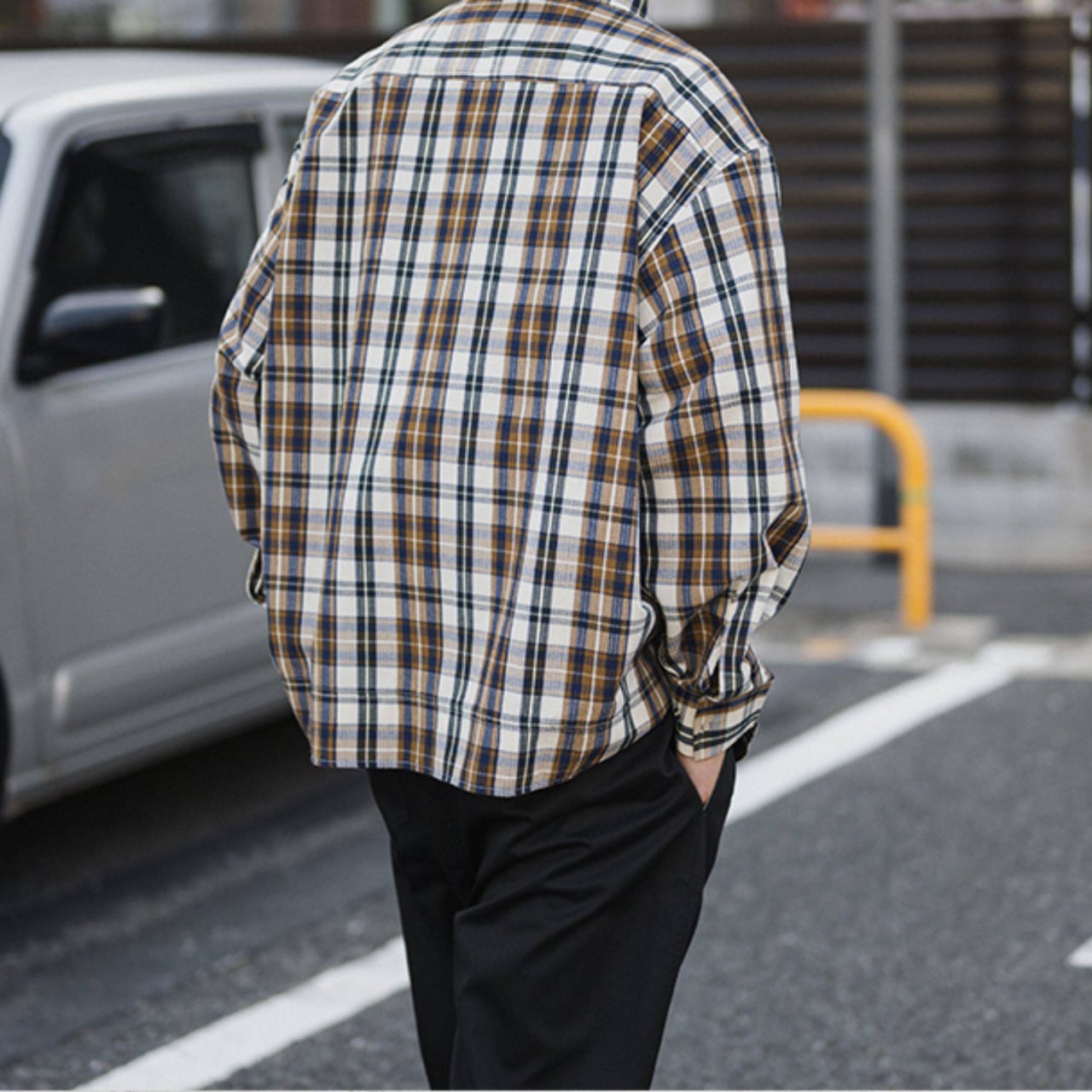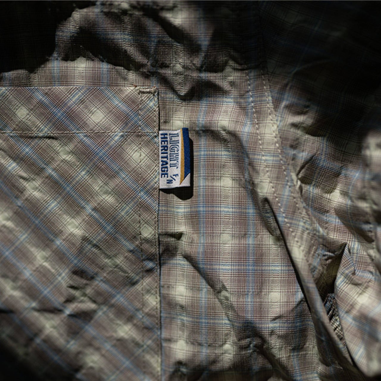 織り交ぜた低彩度チェックが、都会にも馴染む一枚。