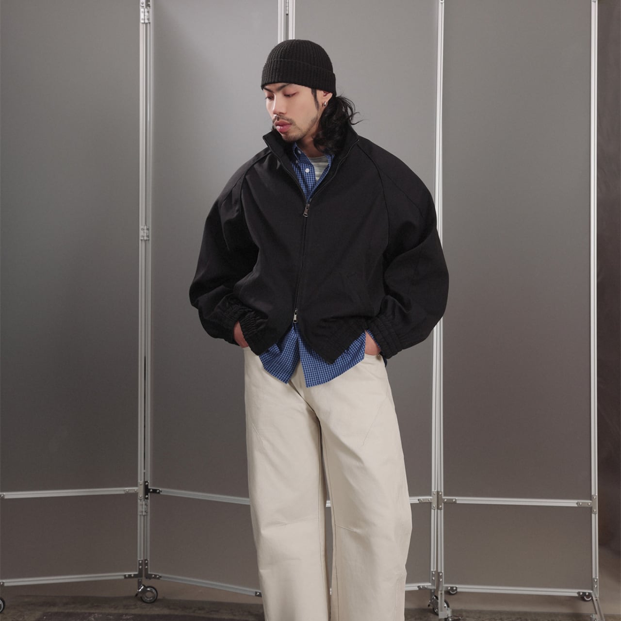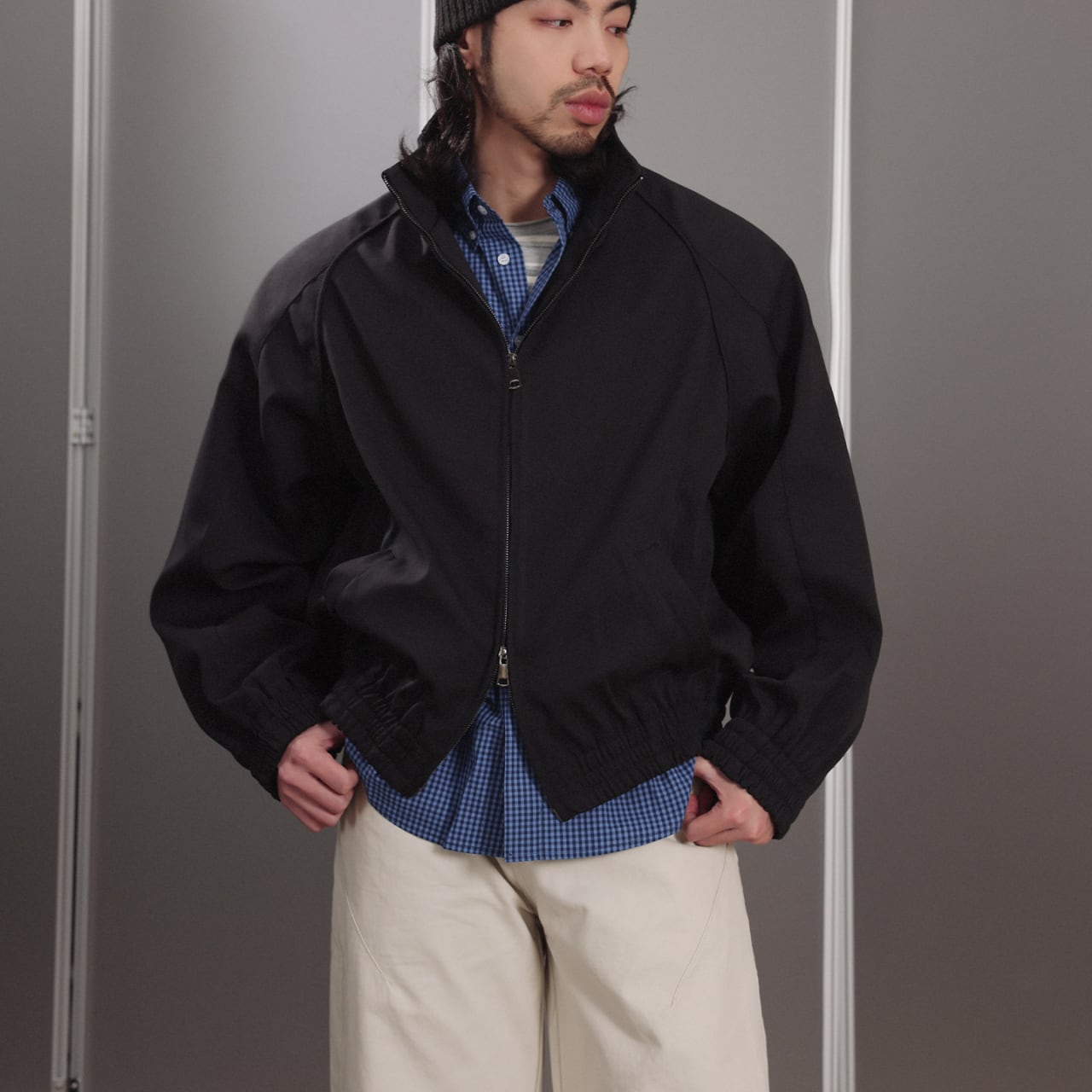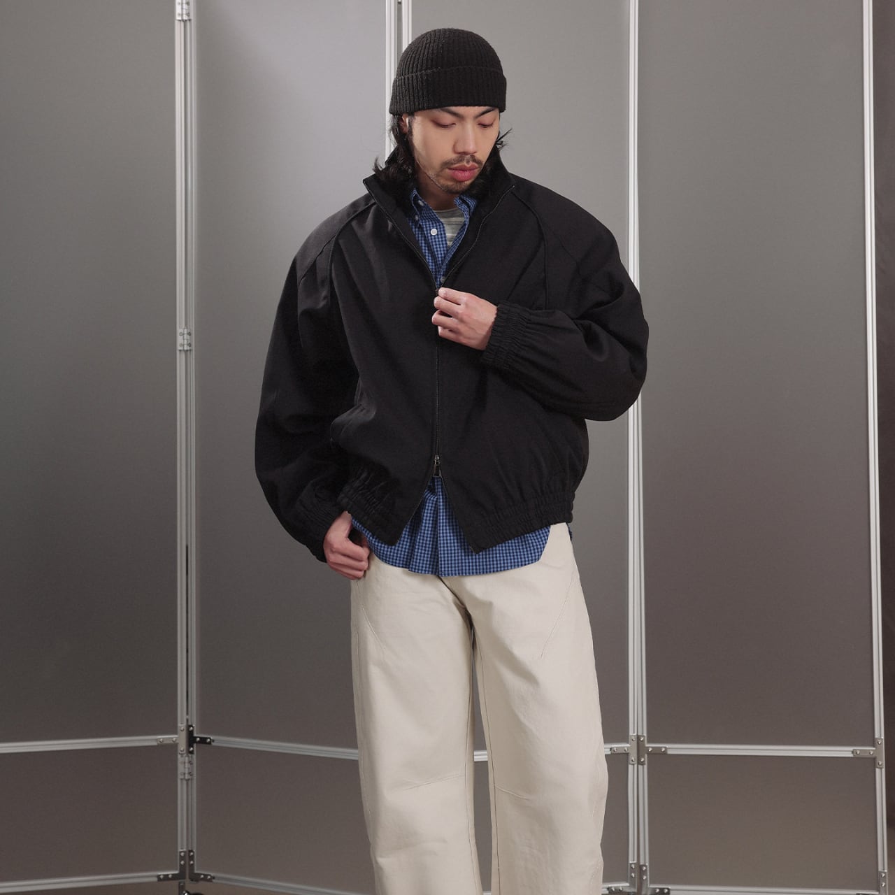 #FashionSelect #GATEStyle #ジップブルゾン #ミニマルコーデ #大人ストリート #シティスタイル #ワイドシルエット #スタンドカラー #春アウター
