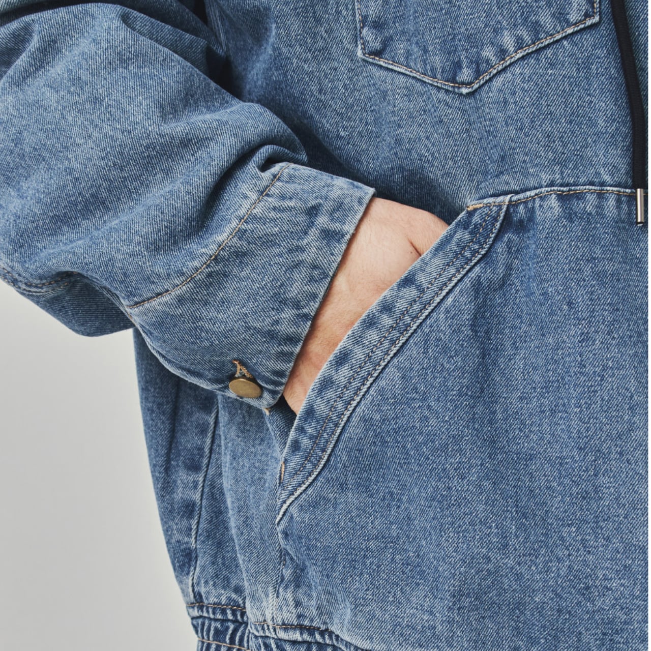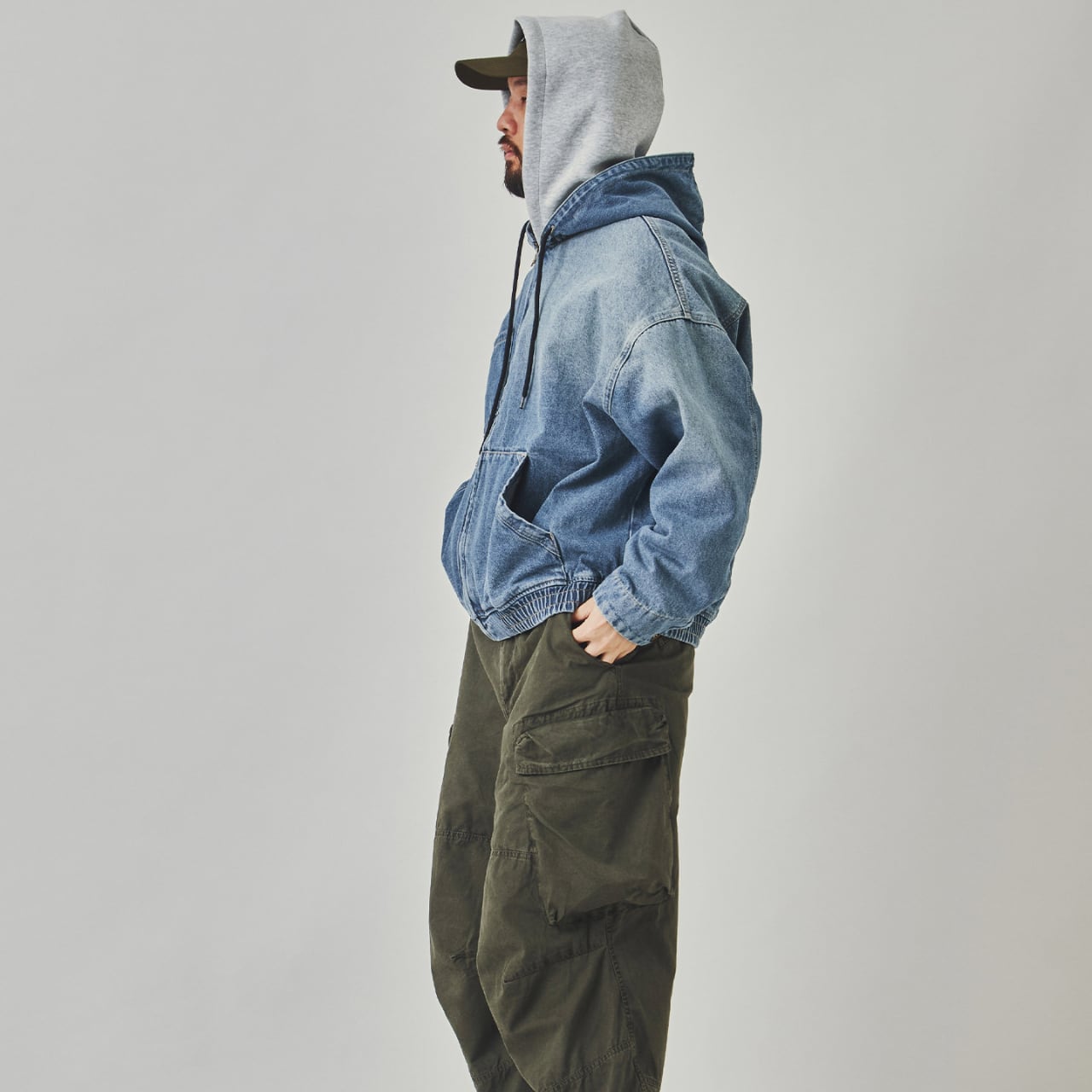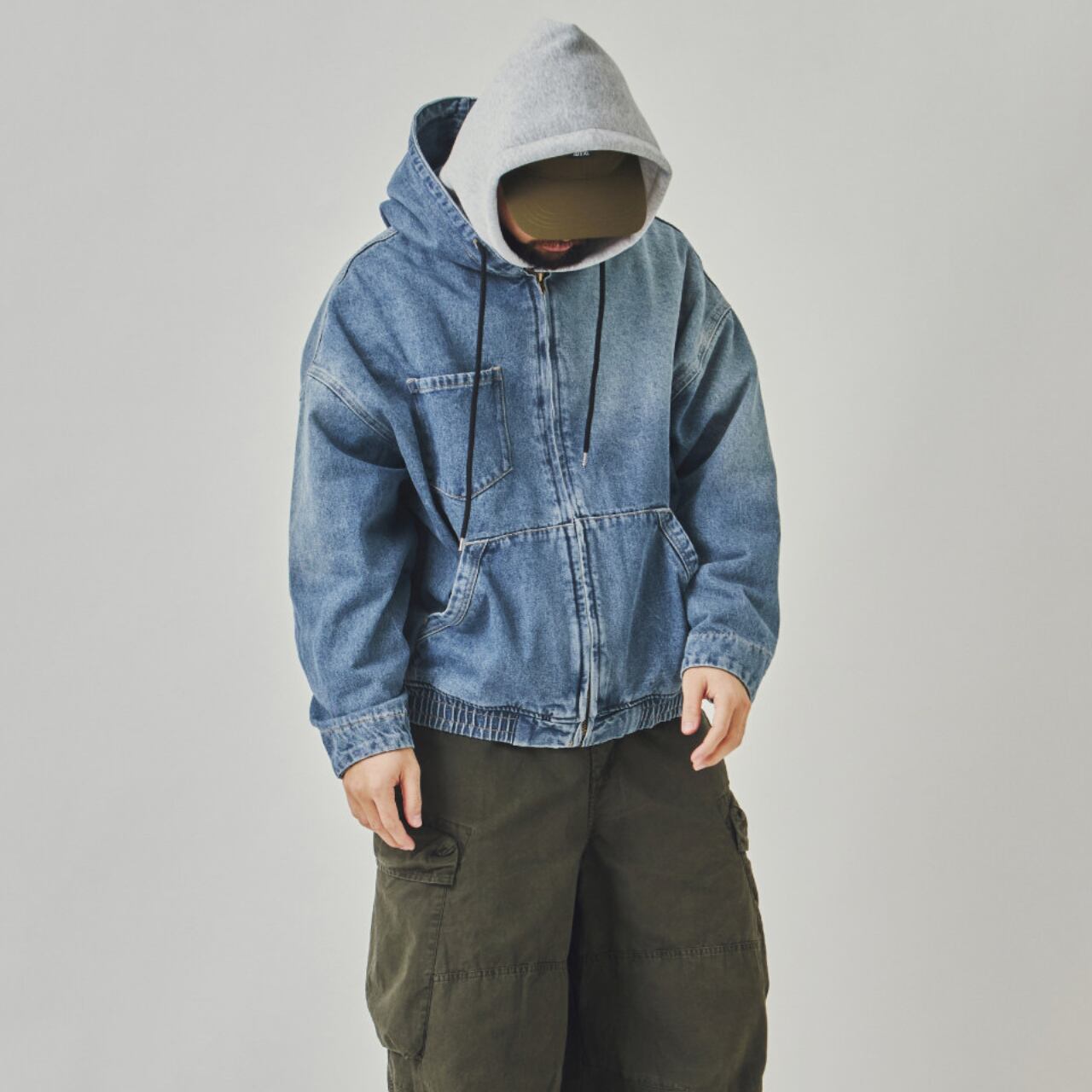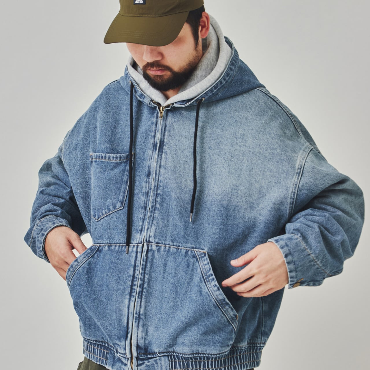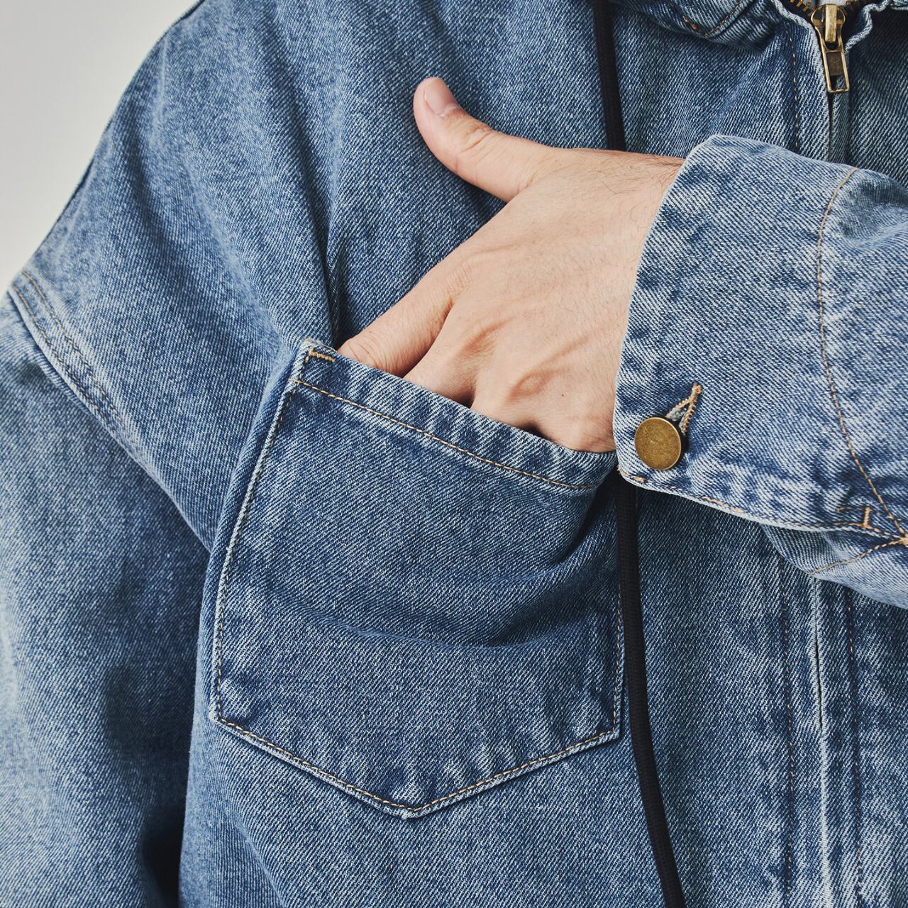着心地の良いオーバーサイズシルエットと、フード付きで機能的なデザインが魅力です。ジップアップのフロント、そして大きなポケットが実用的で、デイリーユースに最適。デニムの素材感がシンプルながらも存在感を放ち、どんなコーディネートにも合わせやすい万能ジャケットです。タウンユースはもちろん、アウトドアにもピッタリの一枚です。
