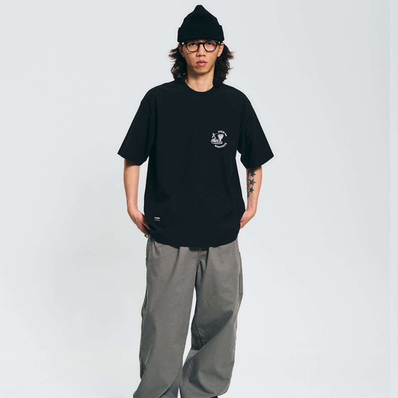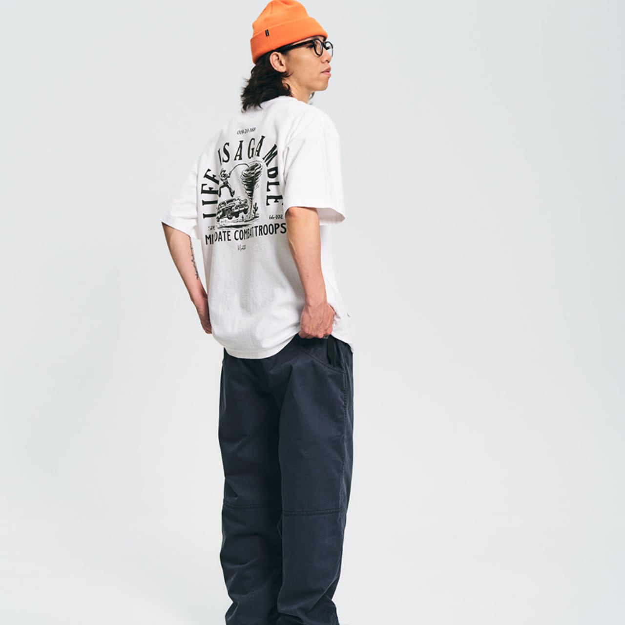 程よくゆとりのあるシルエットで、ワイドパンツやカーゴパンツ、ショーツとも相性抜群。ストリート、アメカジ、シティボーイスタイルまで幅広く取り入れやすい一枚です。