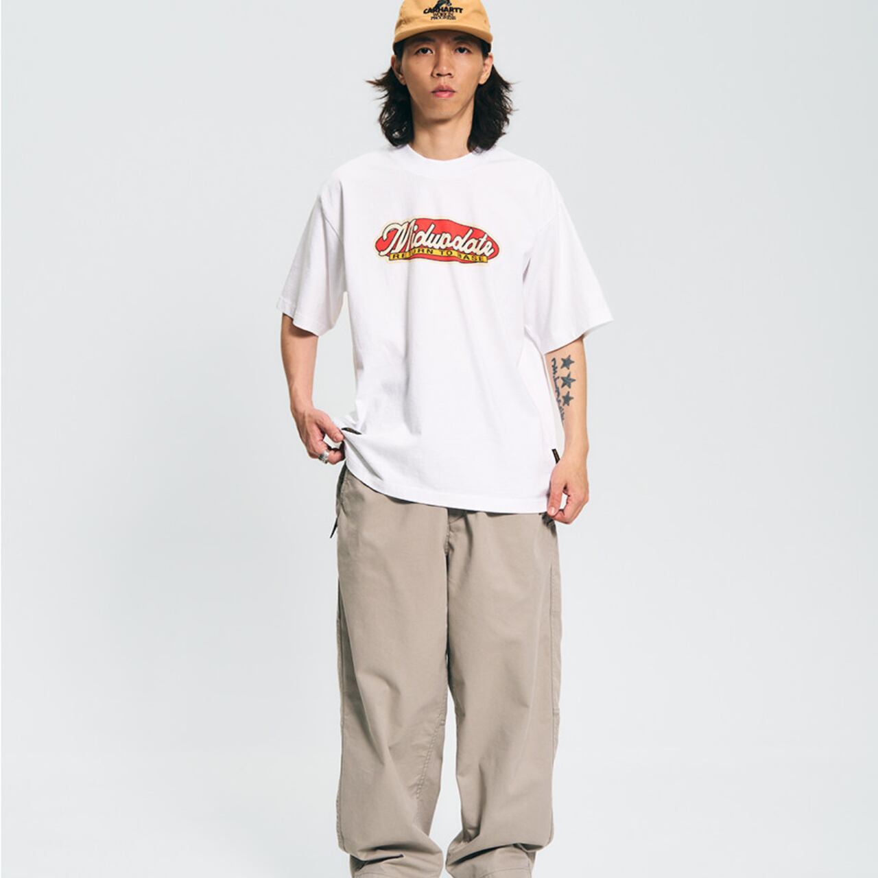310Gのヘビーウェイトコットン素材を使用し、タフでしっかりとした着心地。ワイドパンツやカーゴパンツ、デニムと合わせることで、ストリートやシティボーイスタイルにも自然に馴染みます。