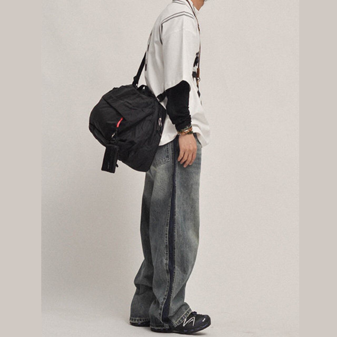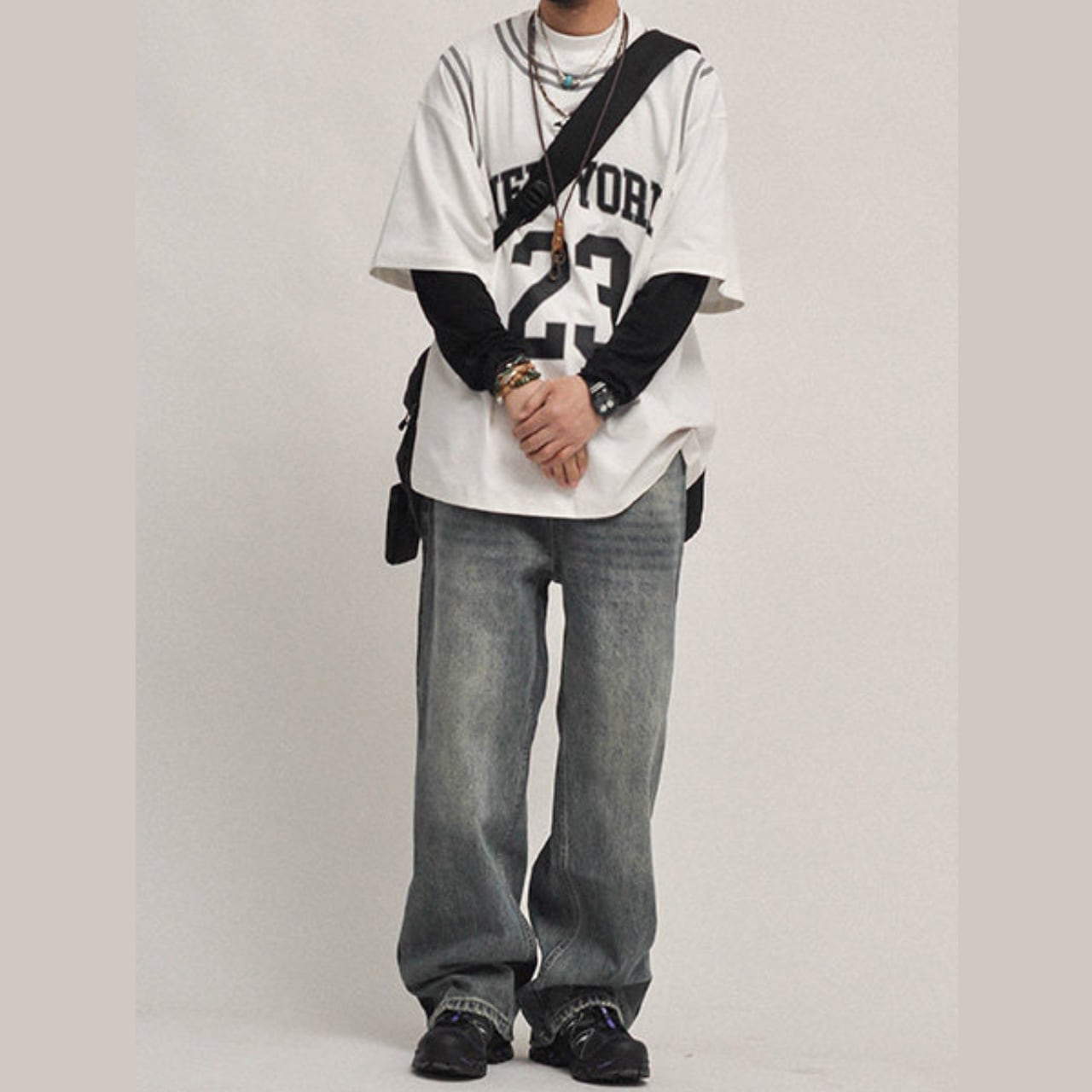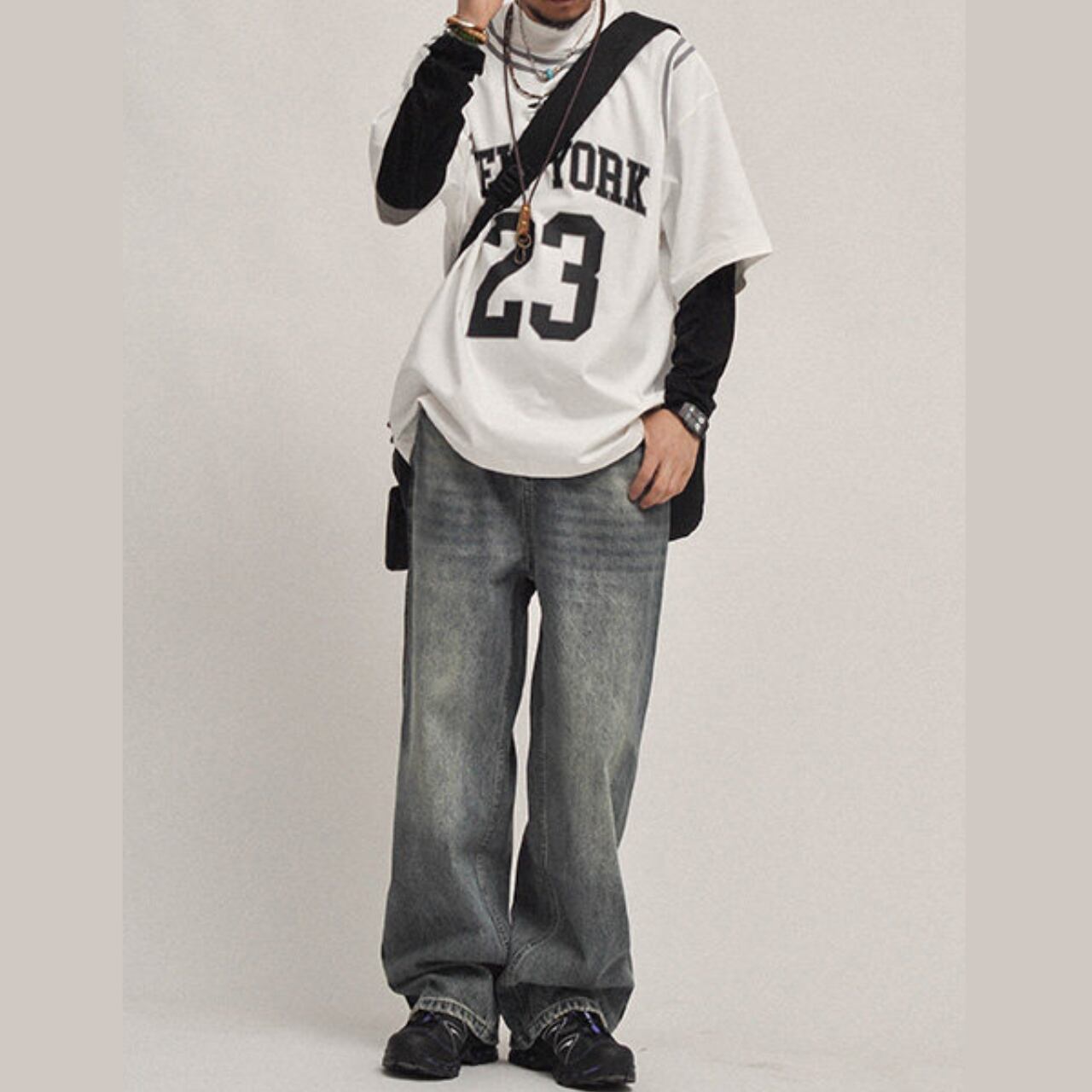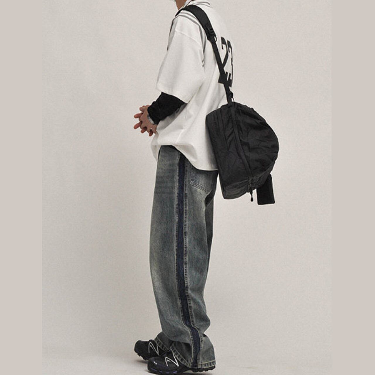 程よく色落ちしたヴィンテージウォッシュと、サイドの切り替えデザインが特徴的なワイドデニムパンツ。ストレートに落ちるゆったりとしたシルエットで、ストリート感のあるラフなスタイリングを演出します。