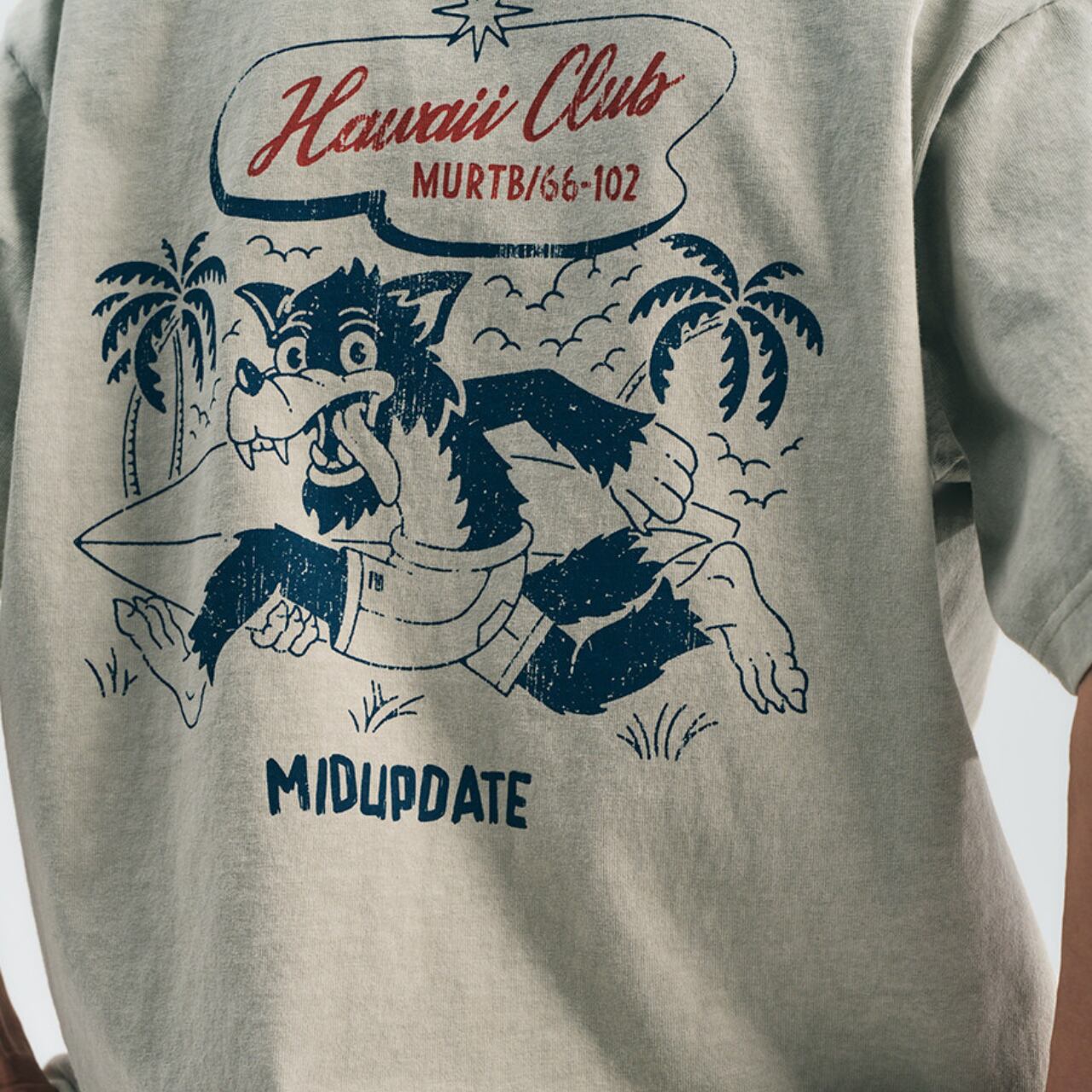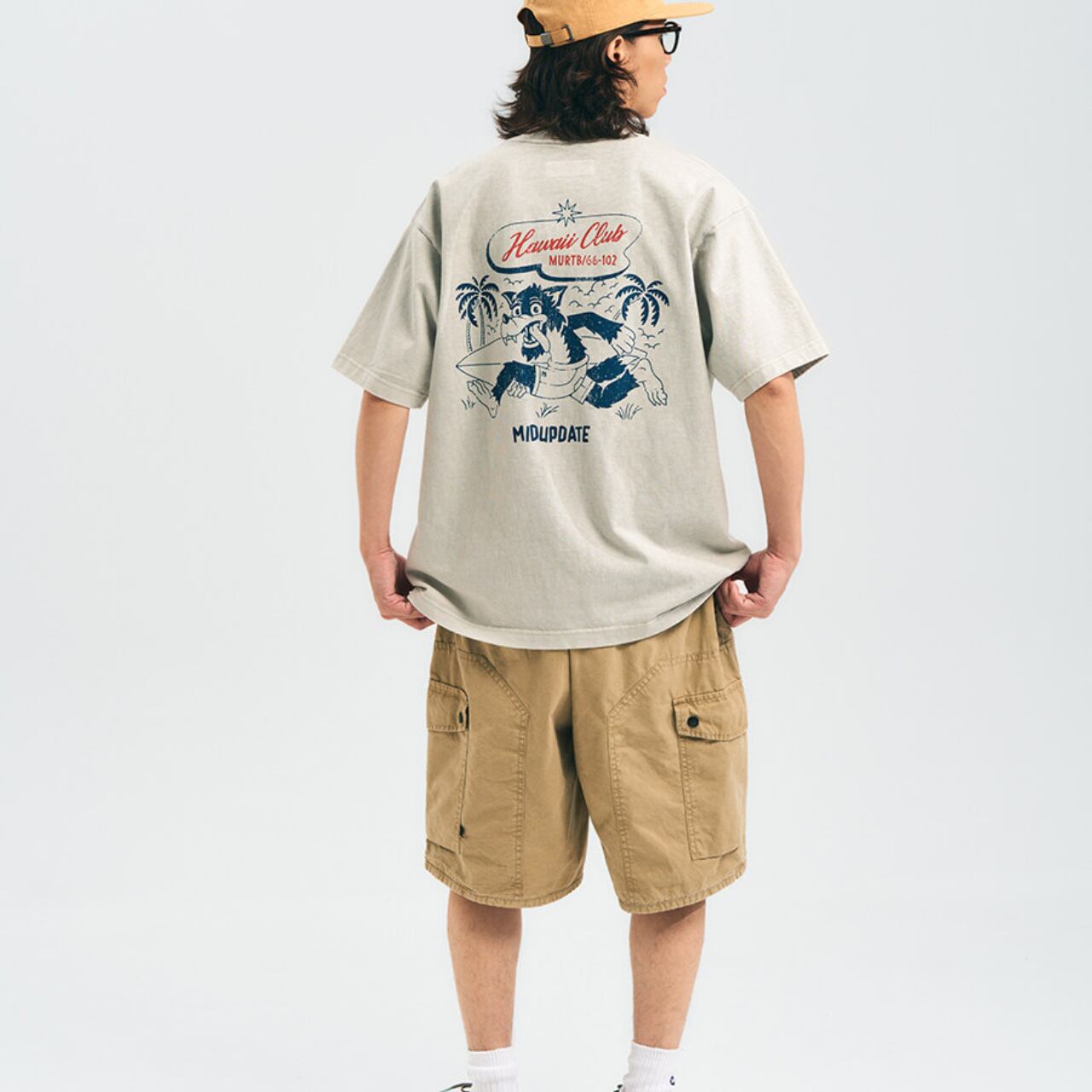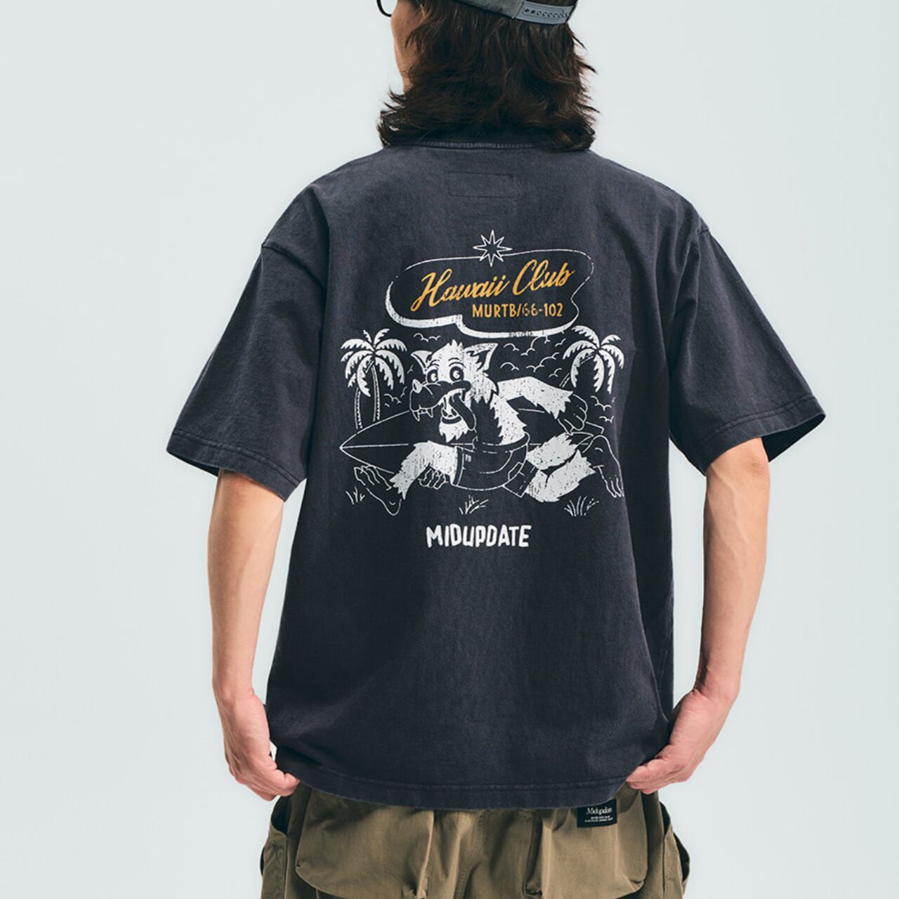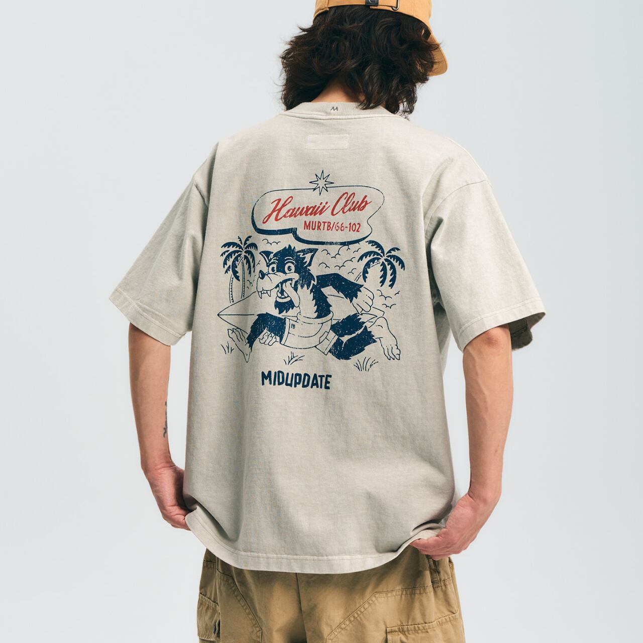 ハワイのサーフカルチャーをベースに、レトロなグラフィックを落とし込んだヴィンテージTシャツ。背面の大胆なプリントがスタイルの主役になり、シンプルなパンツと合わせるだけで雰囲気のあるコーデが完成します。