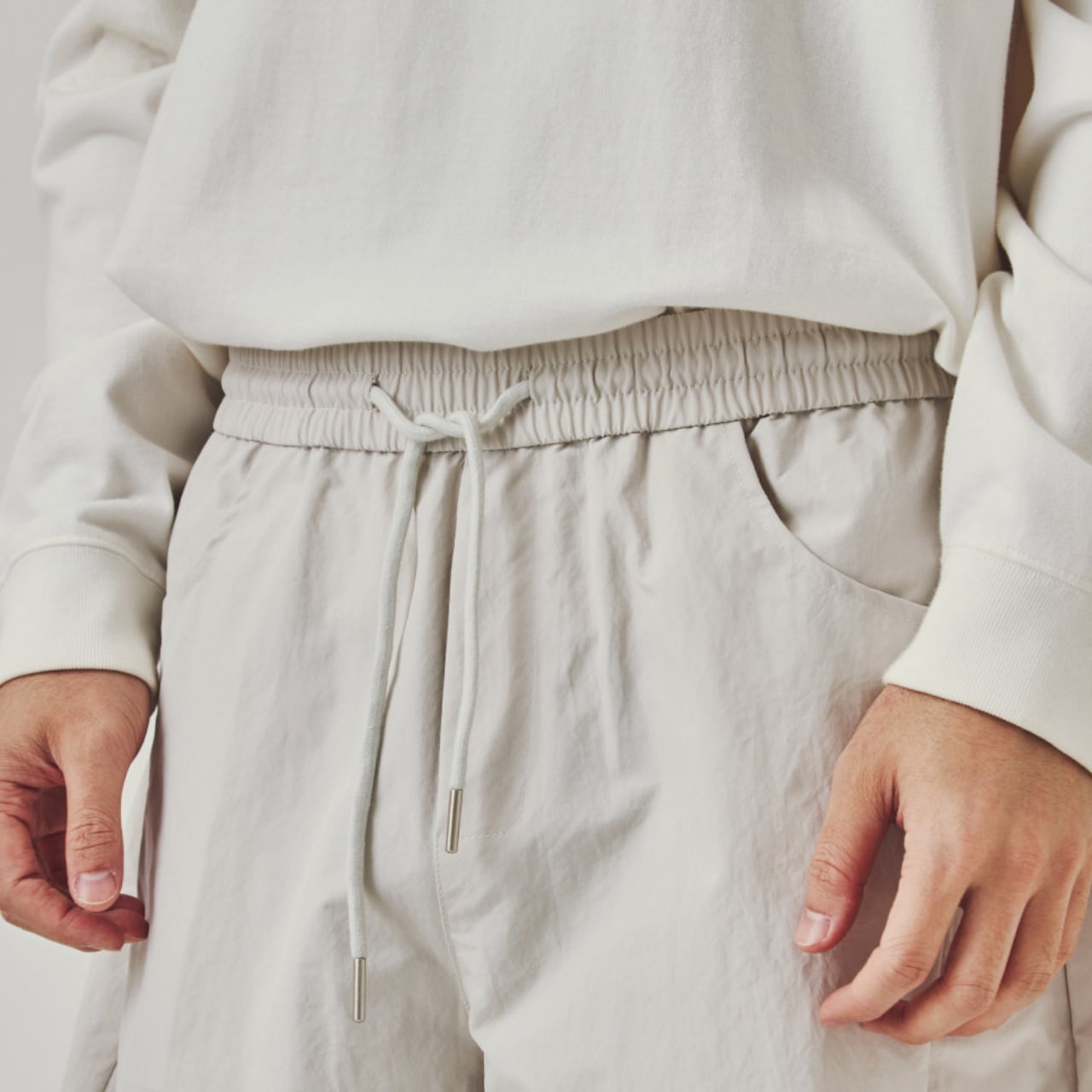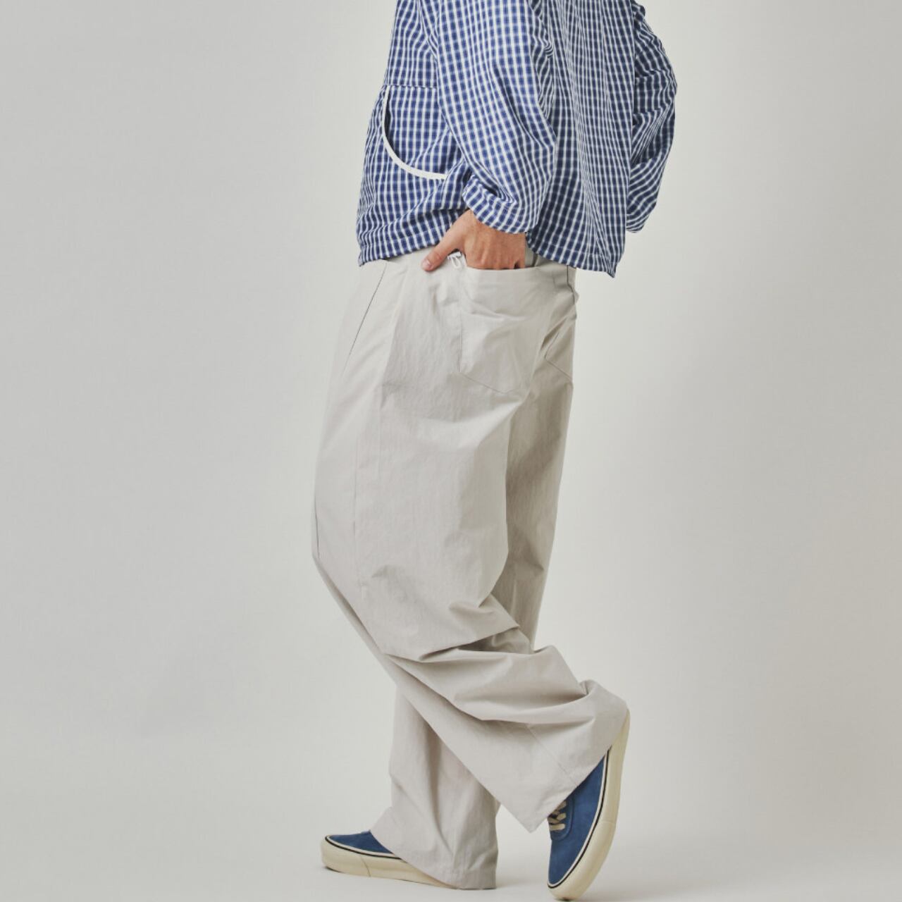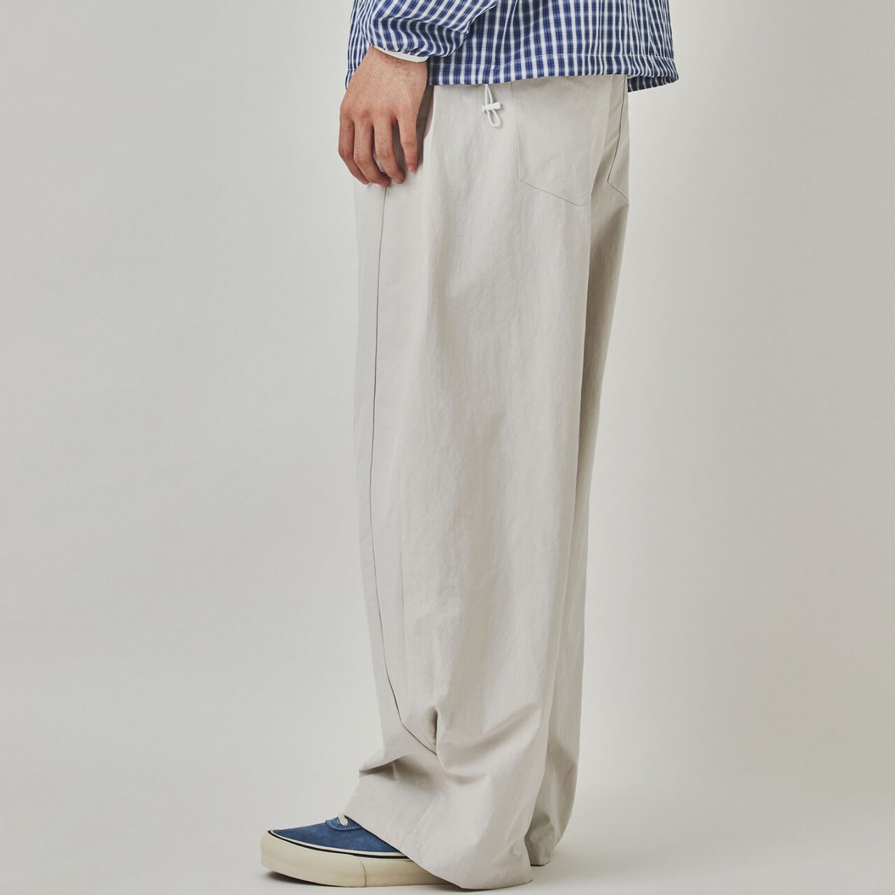 ウエストはゴム仕様でリラックスした履き心地。ストリートからミニマルスタイルまで幅広いコーデに馴染みます。