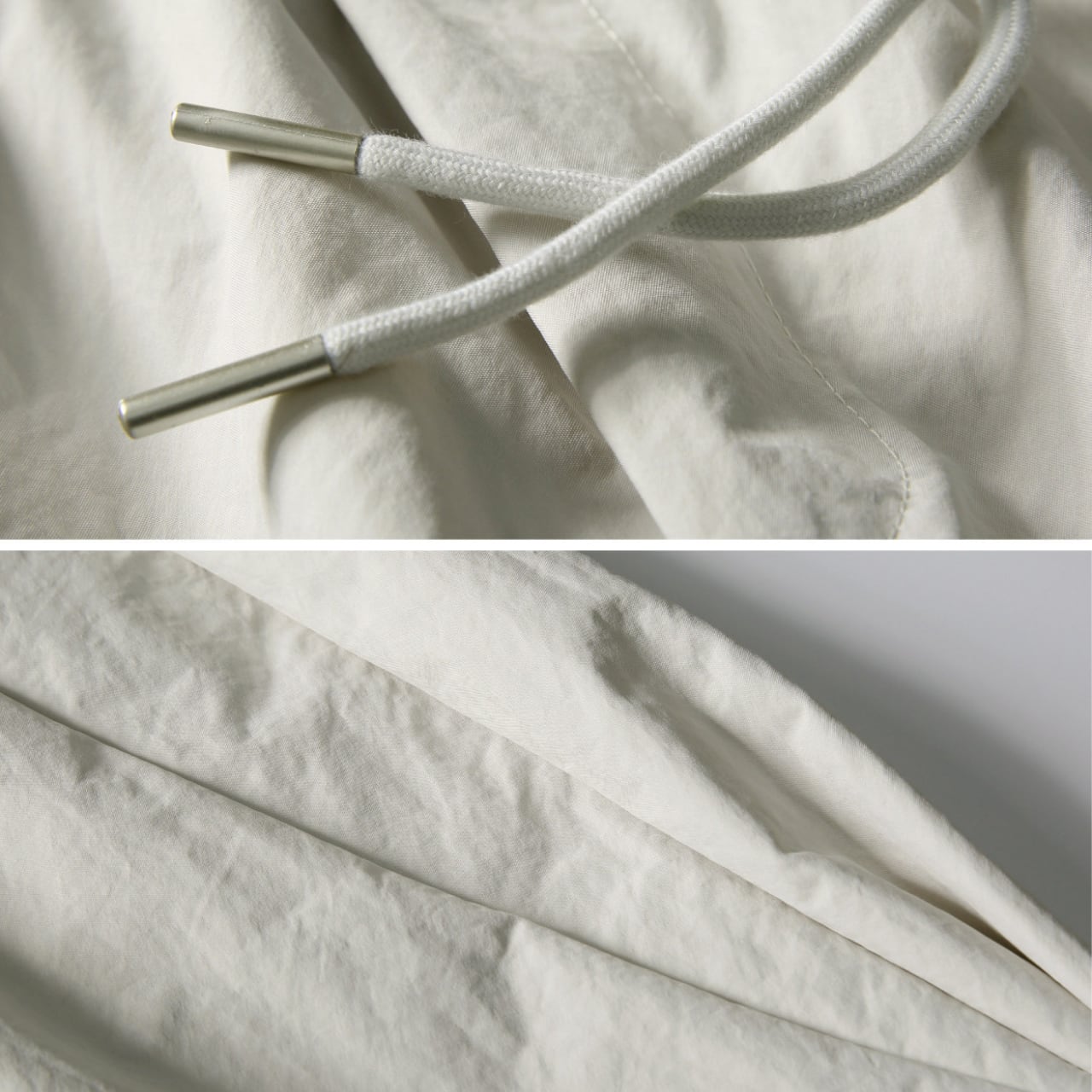 程よくハリのある生地感で、動くたびに自然なドレープが生まれ、シンプルながら存在感のある一本です。