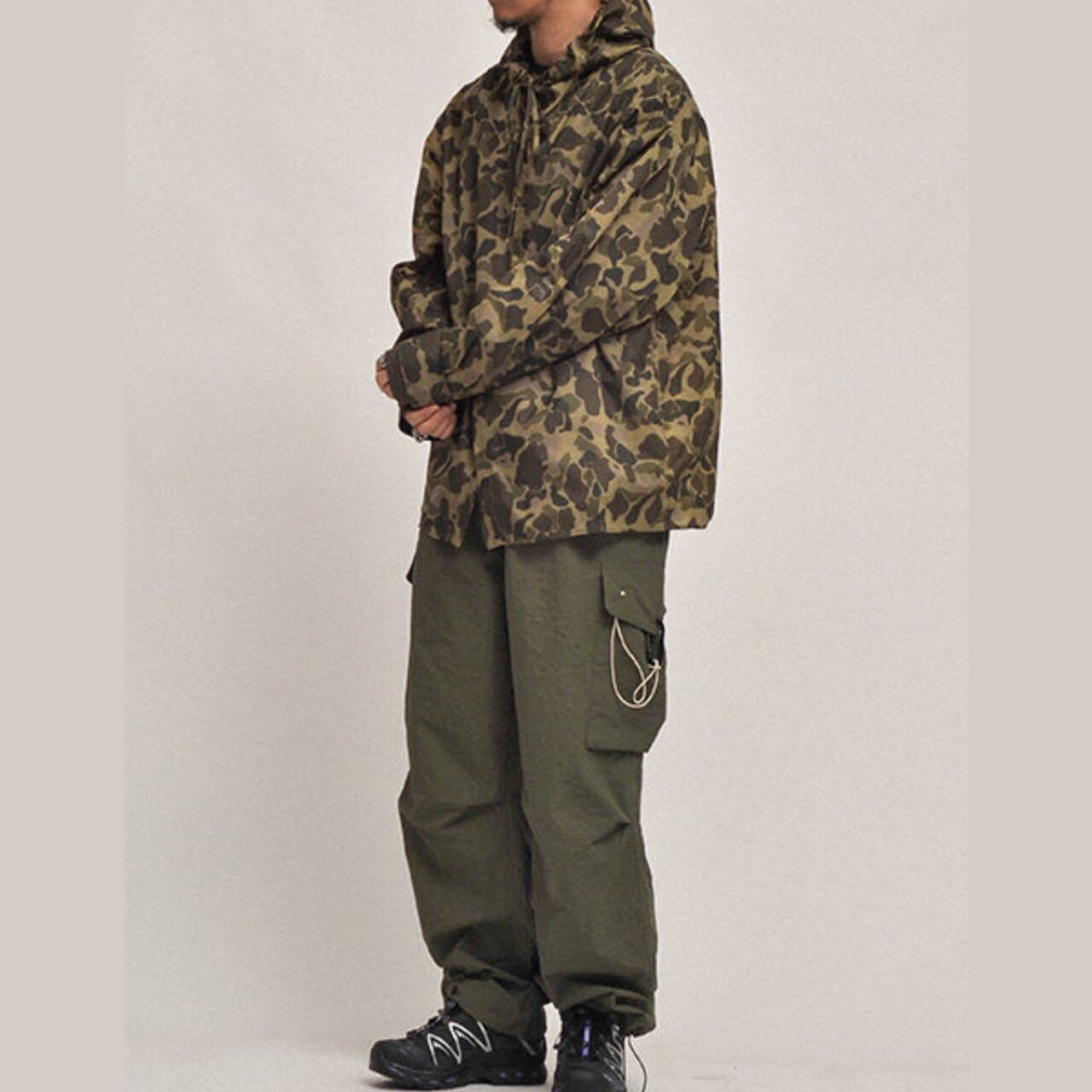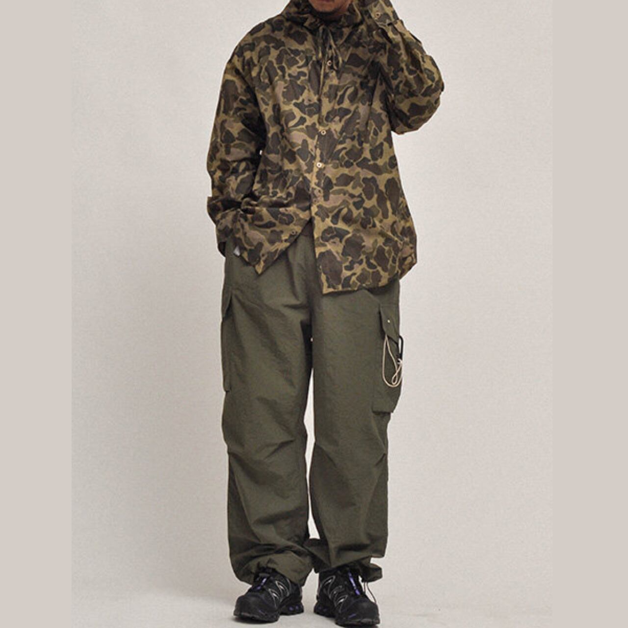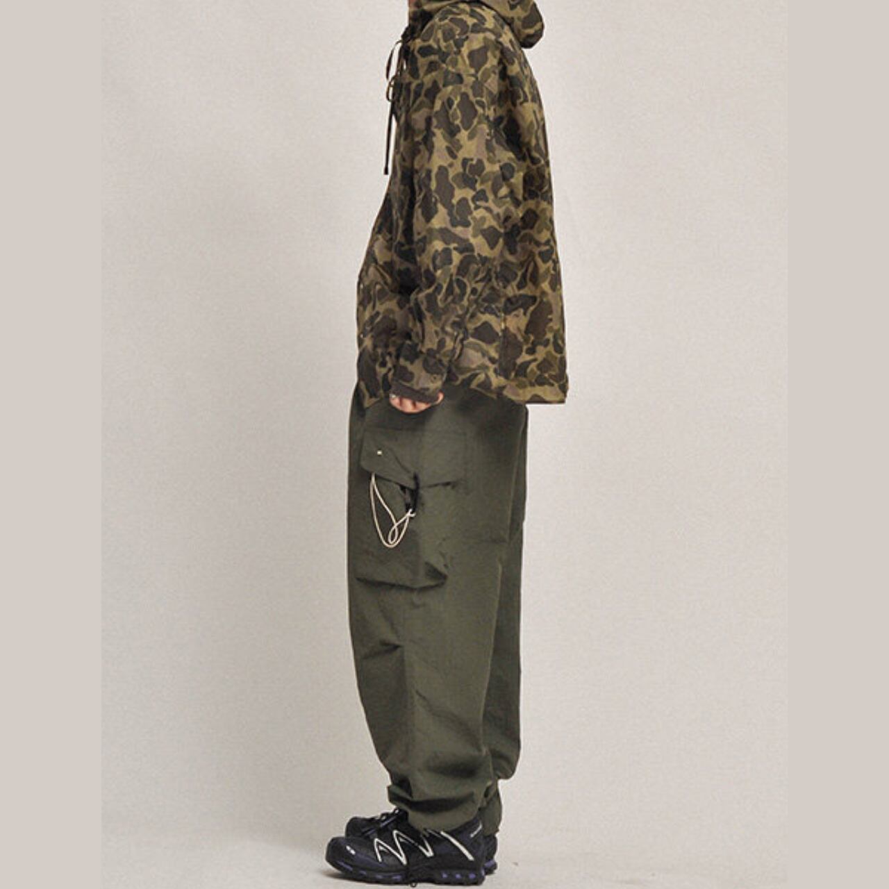ワイドなシルエットと立体的なポケットディテールが、シンプルながらも存在感のある仕上がりに。