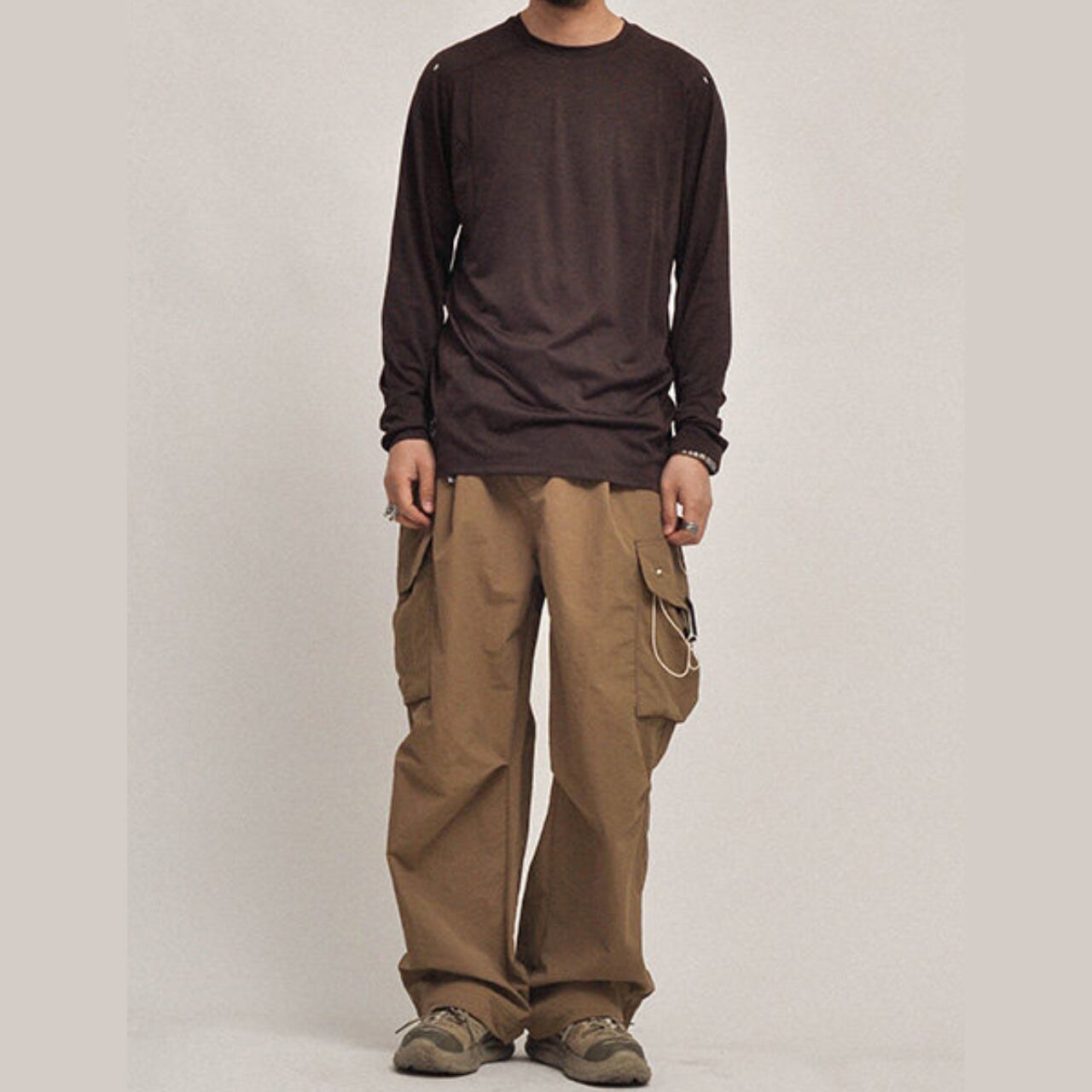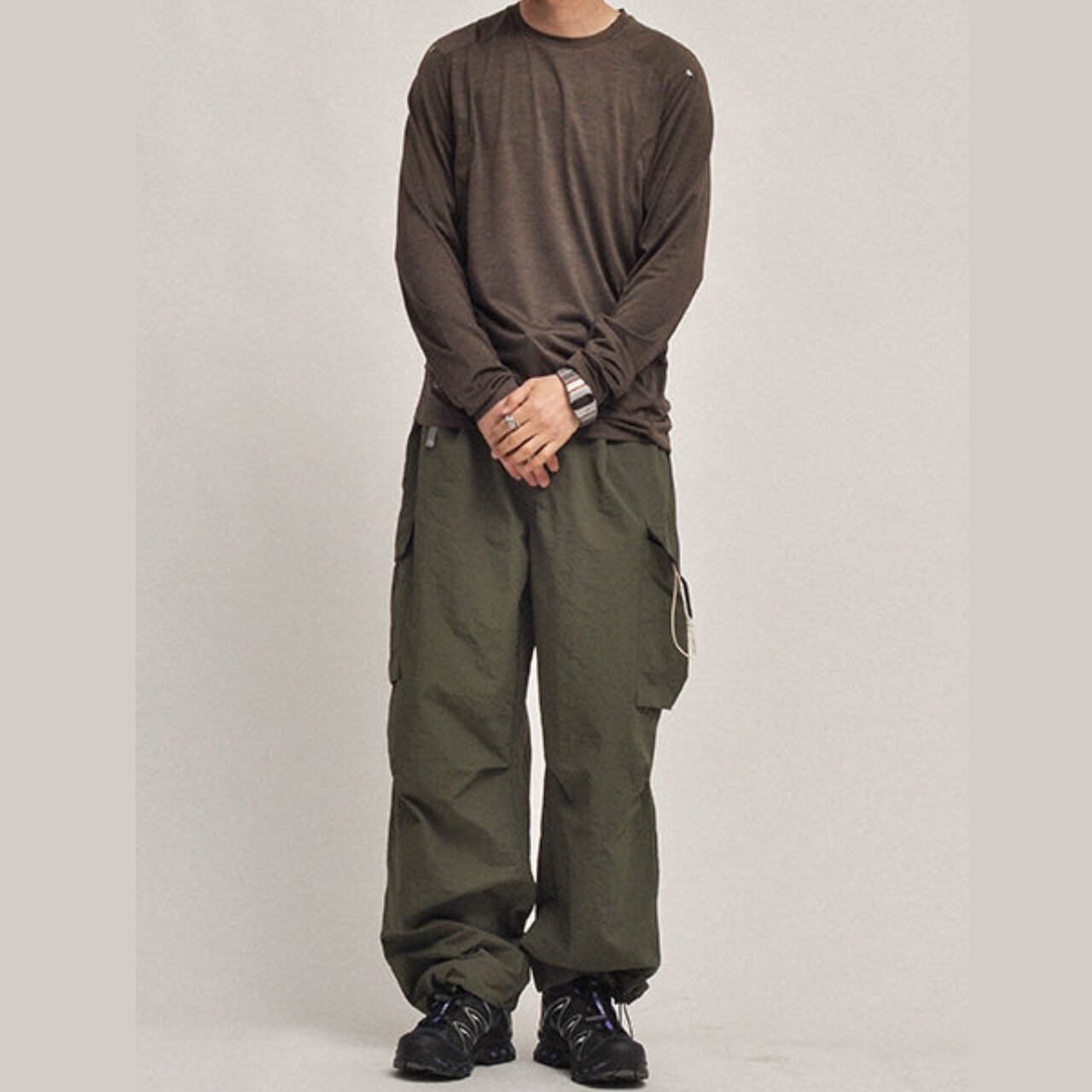 程よいボリューム感でトップスを選ばず、TシャツやロンTはもちろん、テック系やアウトドアスタイルにも自然に馴染みます。