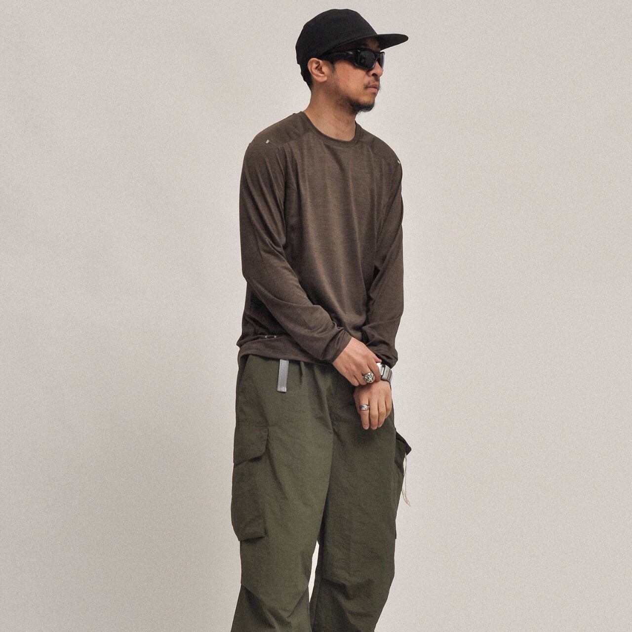 ワイドカーゴとの相性も抜群で、都会的な抜け感を演出する一着。