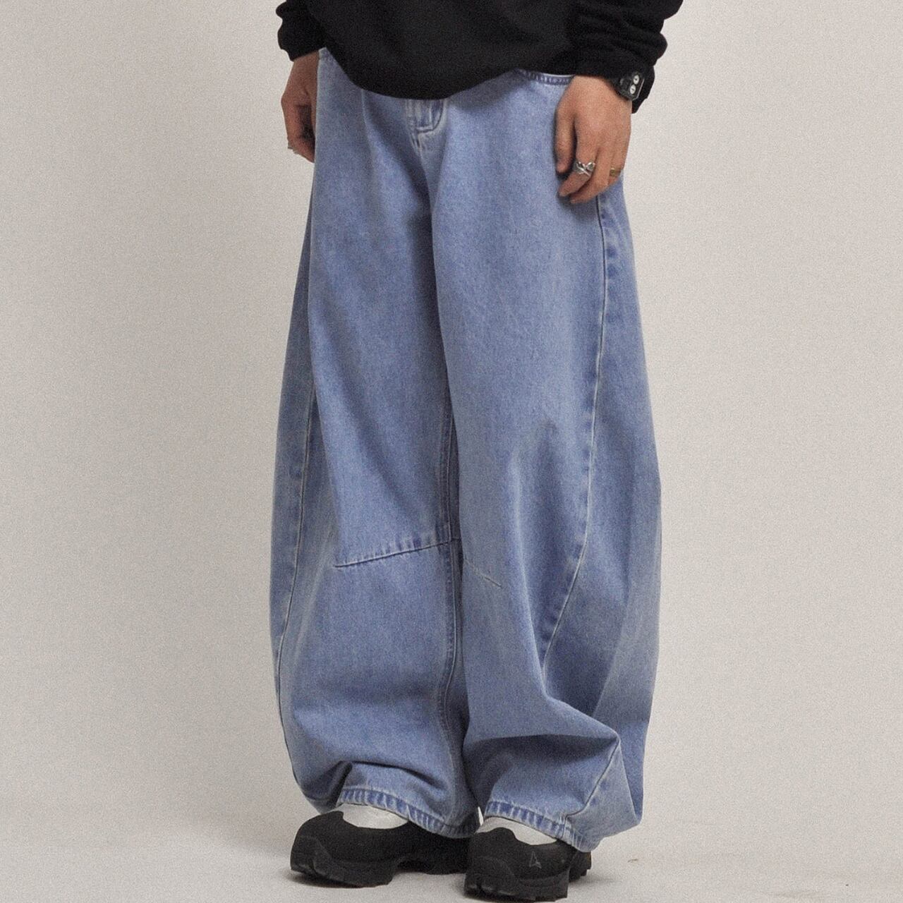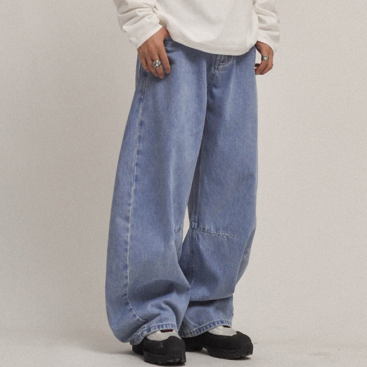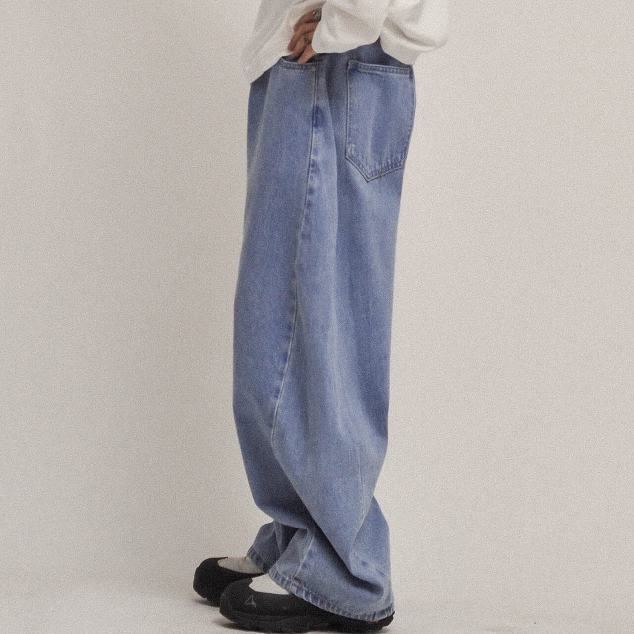 ルーズで存在感のあるシルエットが魅力のヴィンテージライクなワイドデニム。程よく色落ちしたブルーがこなれた雰囲気を演出し、シンプルなトップスと合わせるだけでスタイリングが完成。ボリューム感のあるシルエットはトレンド感抜群で、ストリートから古着ミックスまで幅広く対応。足元に溜まるルーズな裾感が今っぽさを引き立てる一本です。