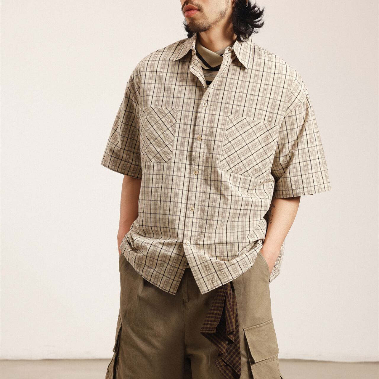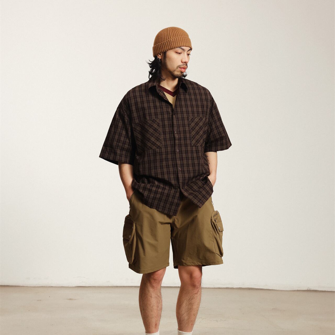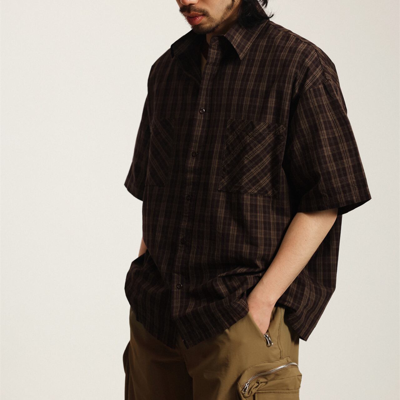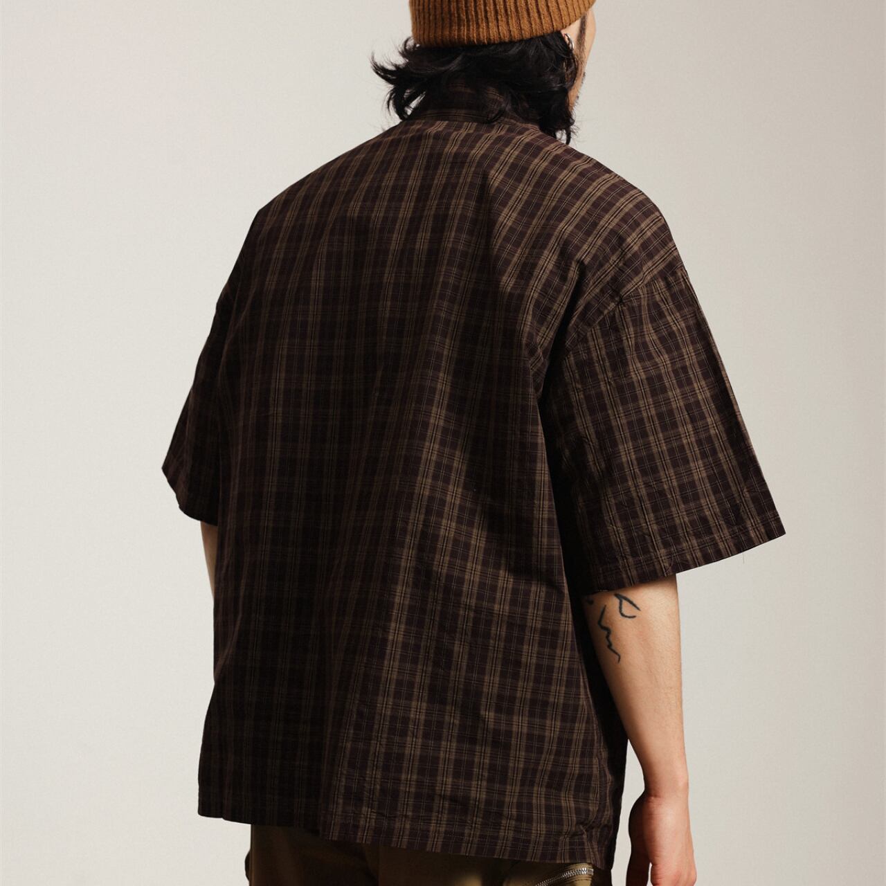 落ち着いたトーンのチェック柄が印象的な、リラックスシルエットの半袖シャツ。クラシックな雰囲気をベースに、胸ポケットの柄切り替えがさりげないアクセントになり、シンプルながらも存在感のある一着に仕上がっています。ゆったりとしたサイズ感で、Tシャツの上からラフに羽織るだけでこなれたスタイリングに。カーゴパンツやショーツと合わせた、都会的なストリートミックスにも相性抜群です。