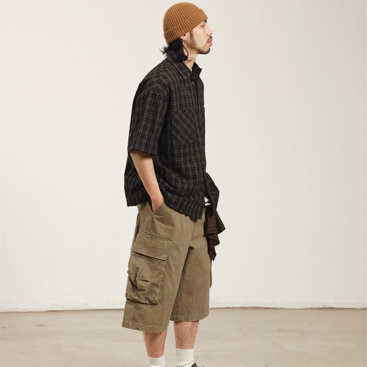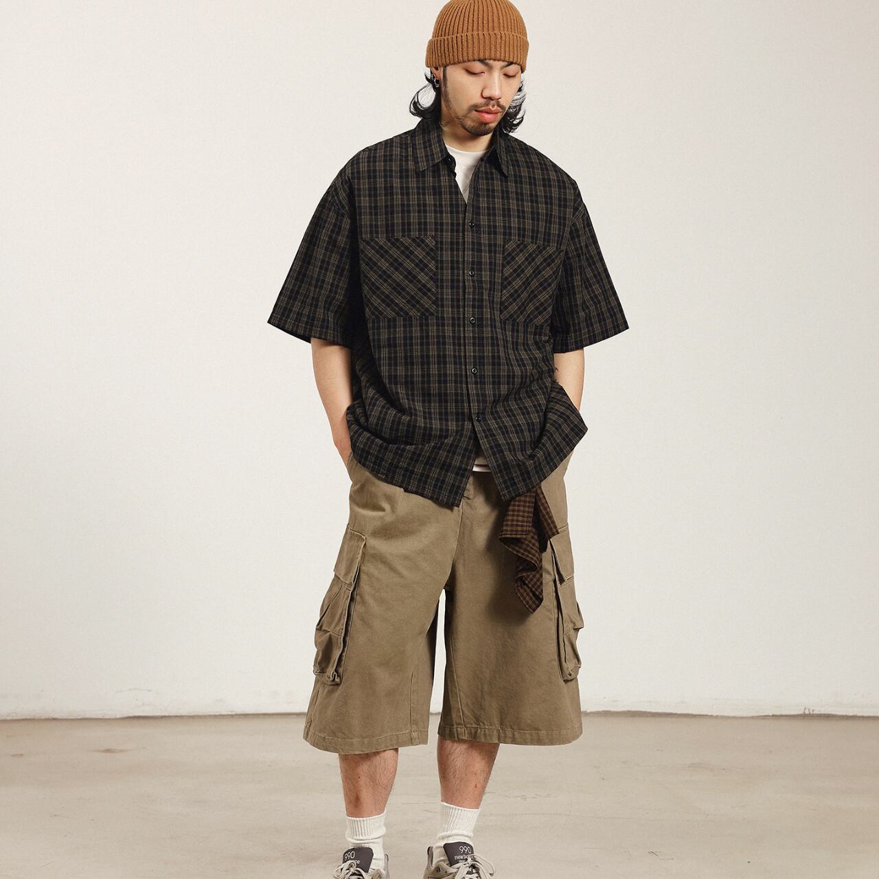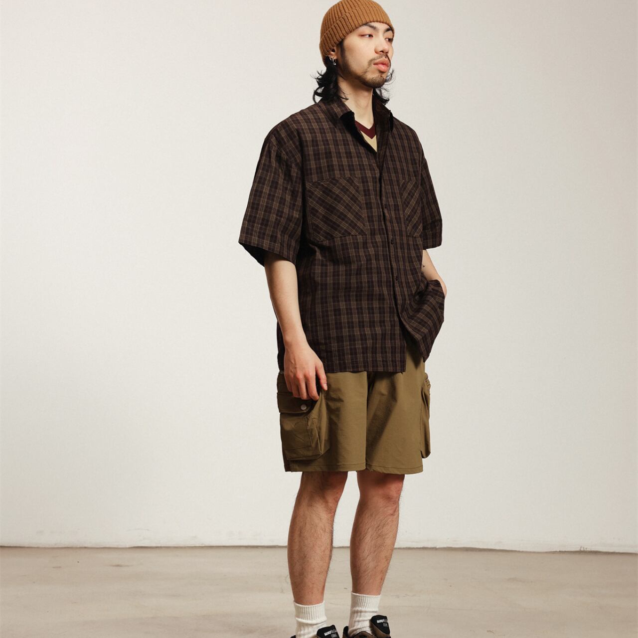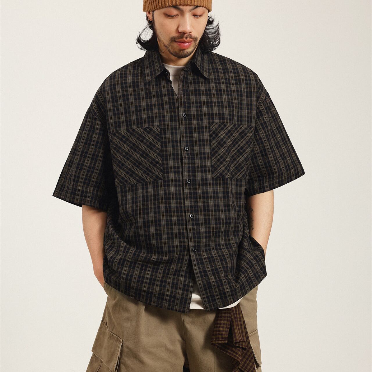 落ち着いたトーンのチェック柄が印象的な、リラックスシルエットの半袖シャツ。クラシックな雰囲気をベースに、胸ポケットの柄切り替えがさりげないアクセントになり、シンプルながらも存在感のある一着に仕上がっています。ゆったりとしたサイズ感で、Tシャツの上からラフに羽織るだけでこなれたスタイリングに。カーゴパンツやショーツと合わせた、都会的なストリートミックスにも相性抜群です。