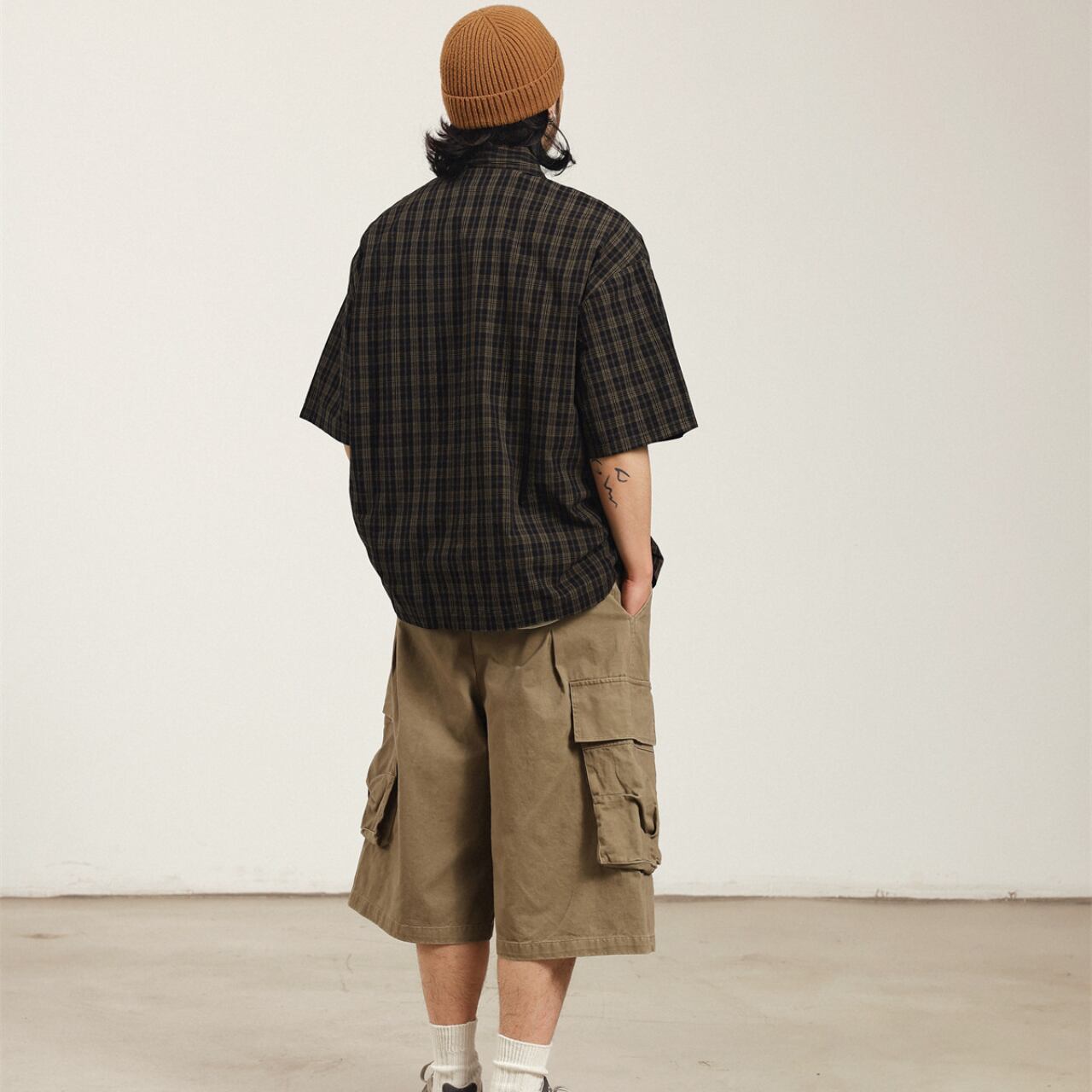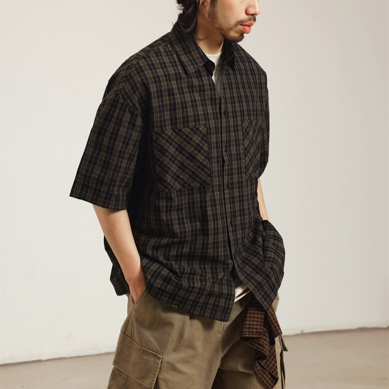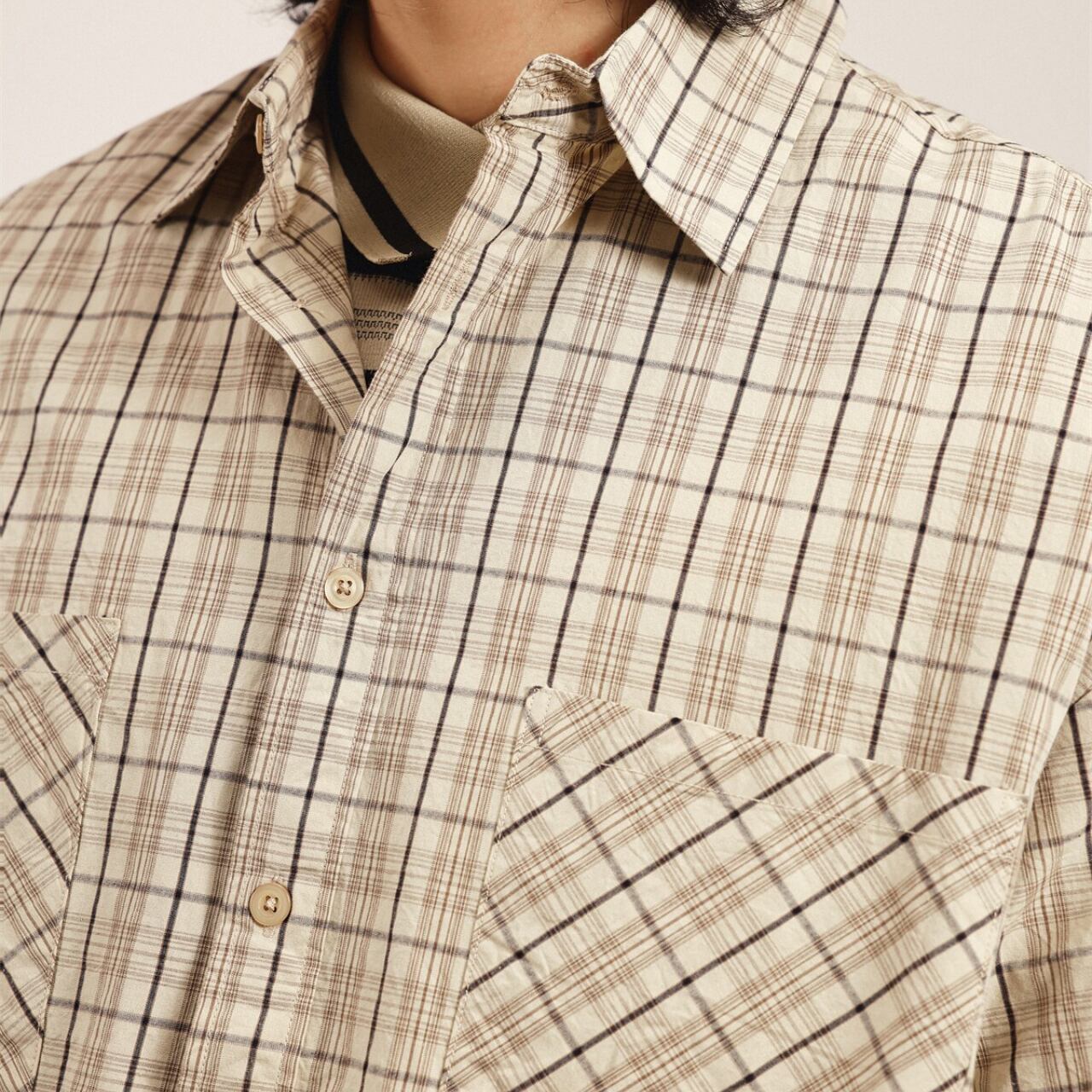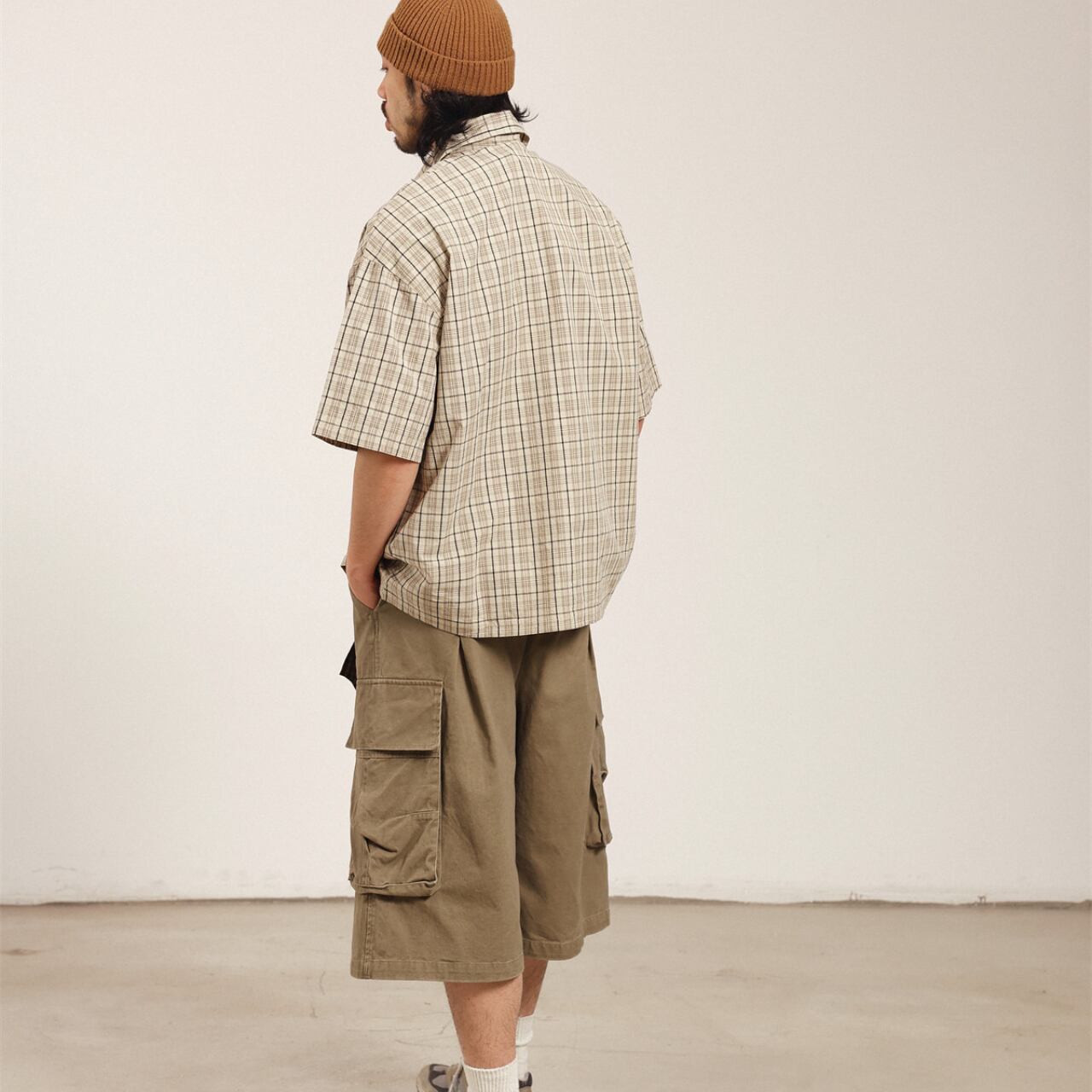 落ち着いたトーンのチェック柄が印象的な、リラックスシルエットの半袖シャツ。クラシックな雰囲気をベースに、胸ポケットの柄切り替えがさりげないアクセントになり、シンプルながらも存在感のある一着に仕上がっています。ゆったりとしたサイズ感で、Tシャツの上からラフに羽織るだけでこなれたスタイリングに。カーゴパンツやショーツと合わせた、都会的なストリートミックスにも相性抜群です。