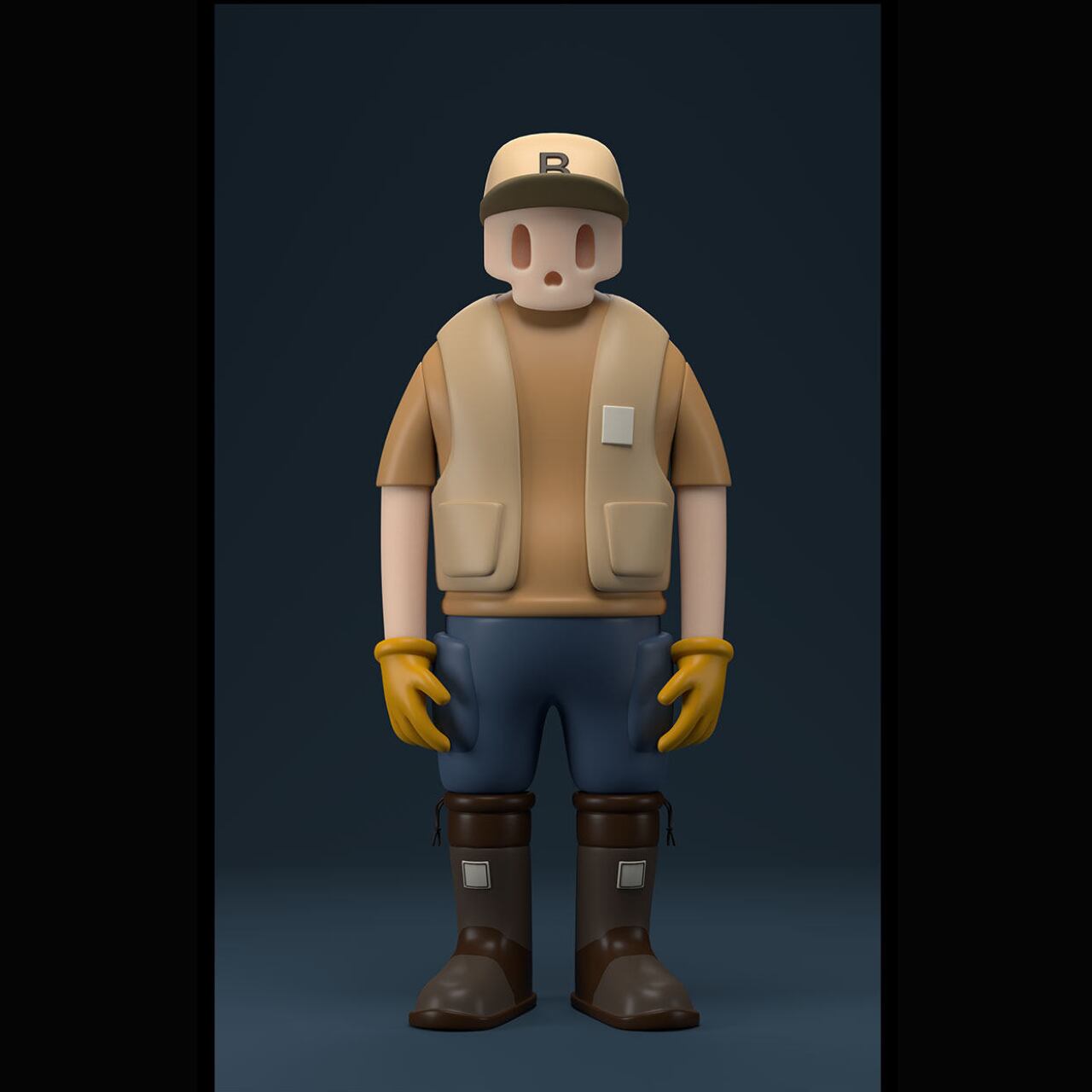 無機質な表情とアウトドア装備が融合した、存在感あるフィギュア。
