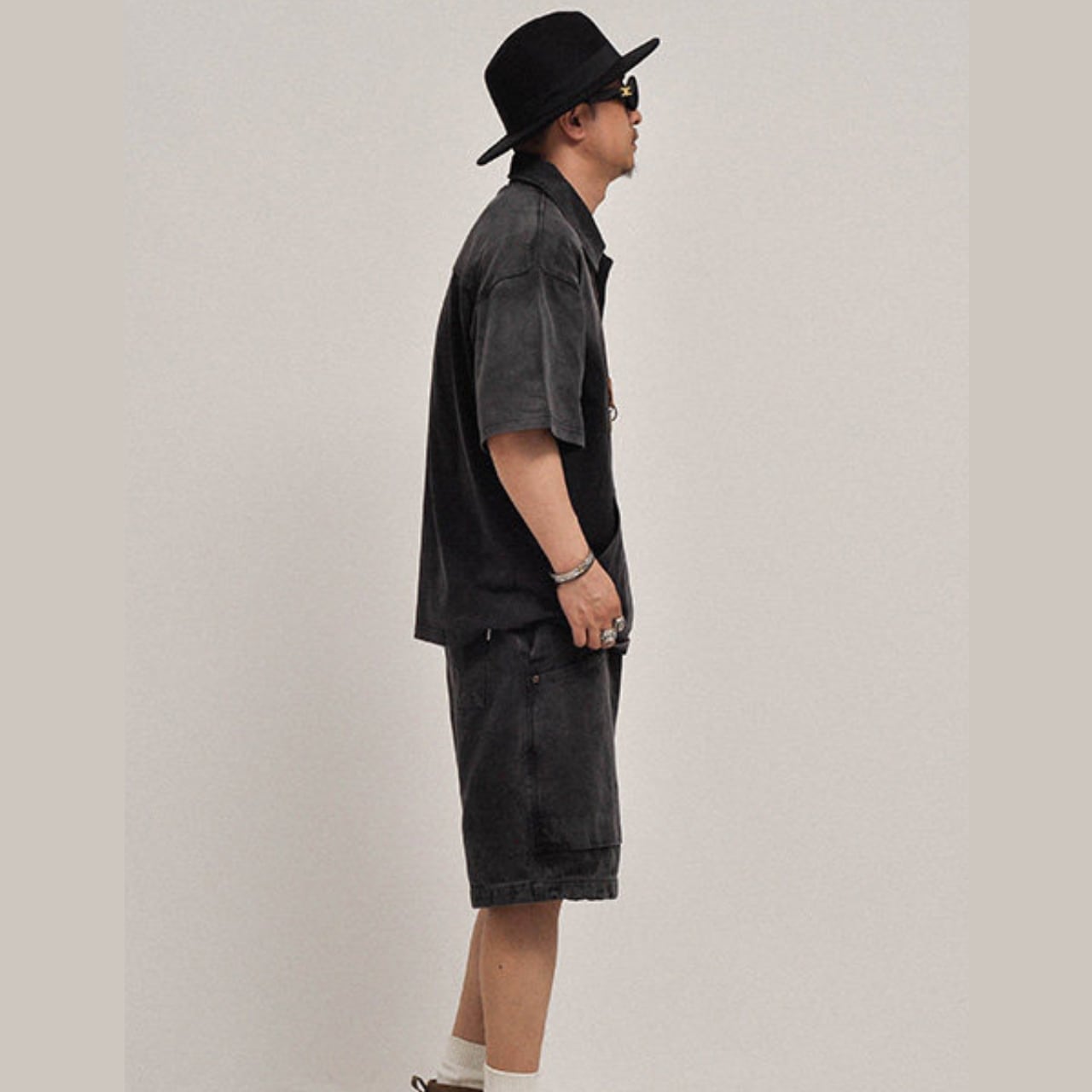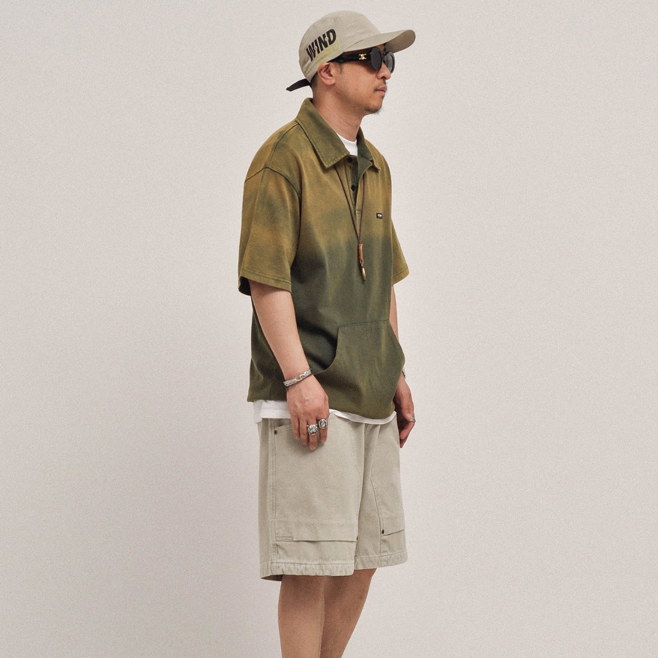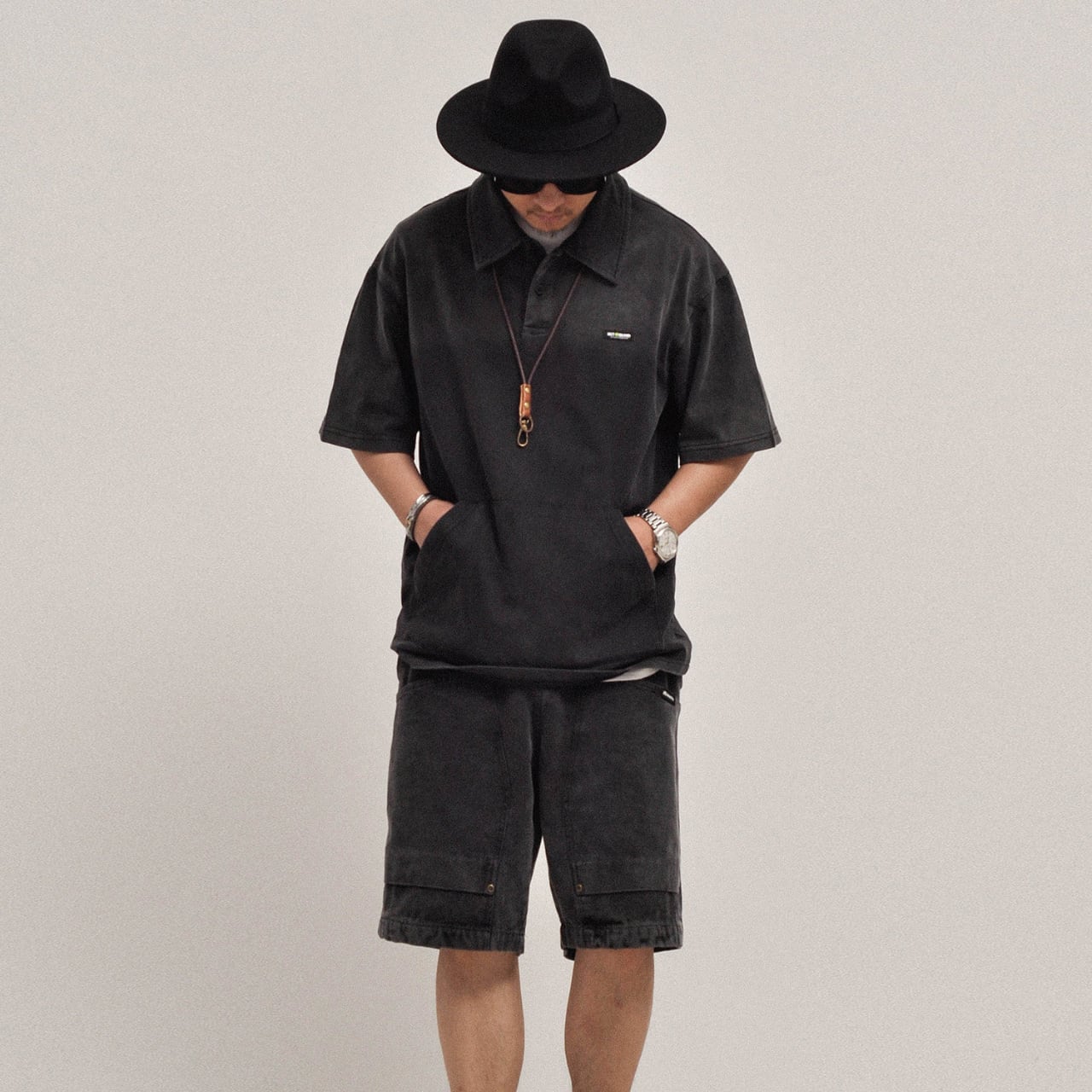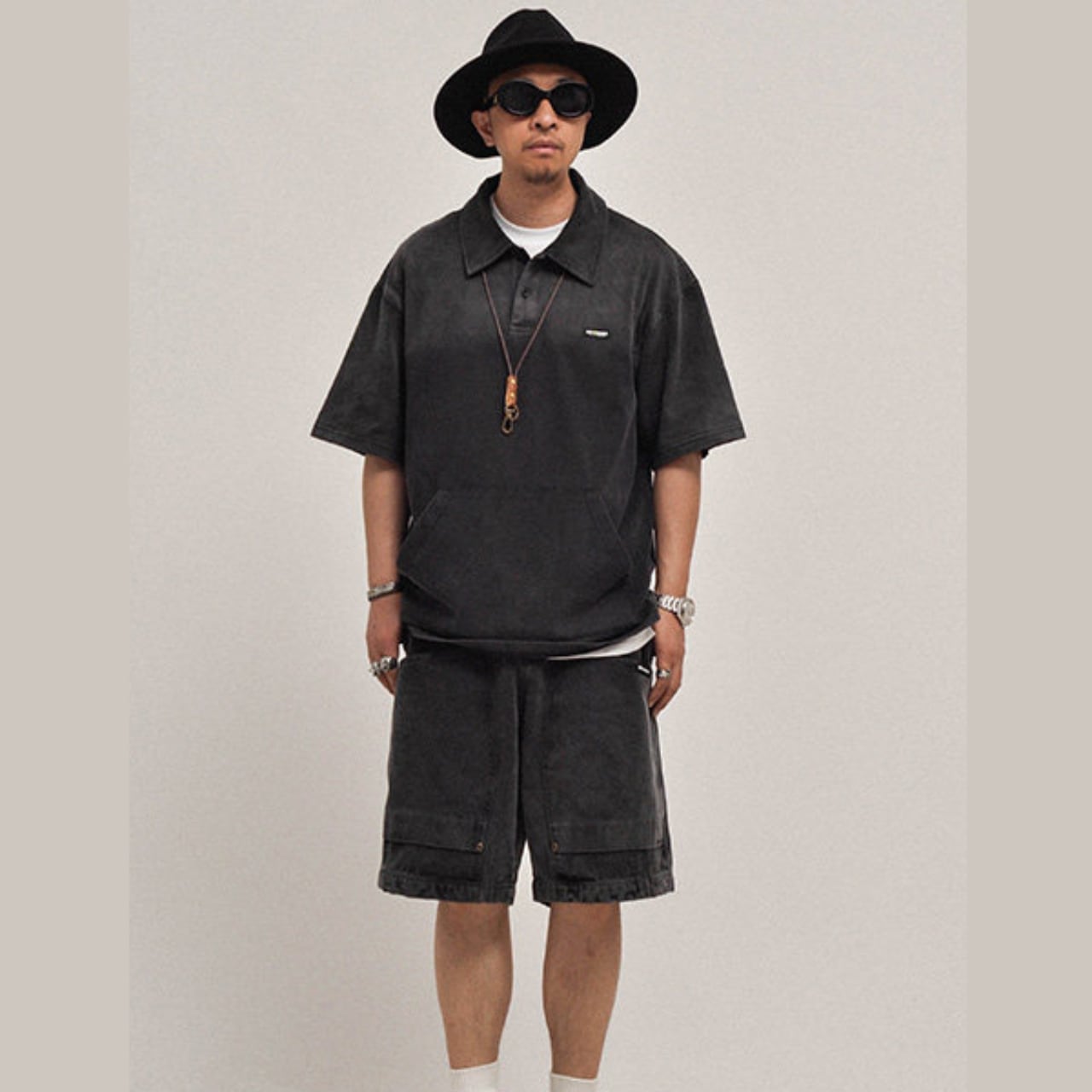 ヴィンテージライクな色落ち加工が魅力の、存在感あるヘビーウェイトポロシャツ。しっかりとした300gコットン素材を使用し、タフでありながらも着込むほどに風合いが増す一着です。ゆったりとしたシルエットと程よいドロップショルダーが抜け感を演出し、ショーツと合わせたストリートスタイルはもちろん、ワークブーツで無骨にまとめるのもおすすめ。ブラックはクールに、グリーンはミリタリー感のある雰囲気に仕上がります。