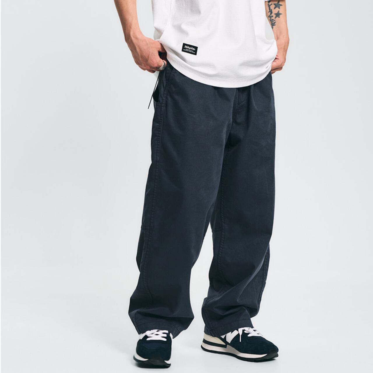 ラフさと機能性を両立した、都会的なワイドストレートパンツ。軽さと耐久性を兼ね備えたコットン×ナイロン素材で、日常からアクティブシーンまで対応できる一本です。ウエストはドローコード仕様でストレスフリーな穿き心地、ゆったりとしたシルエットが抜け感を演出。シンプルなTシャツと合わせるだけで、自然と雰囲気のあるスタイリングが完成します。程よい無骨さとクリーンさを併せ持つ、着回し力の高い万能パンツです。