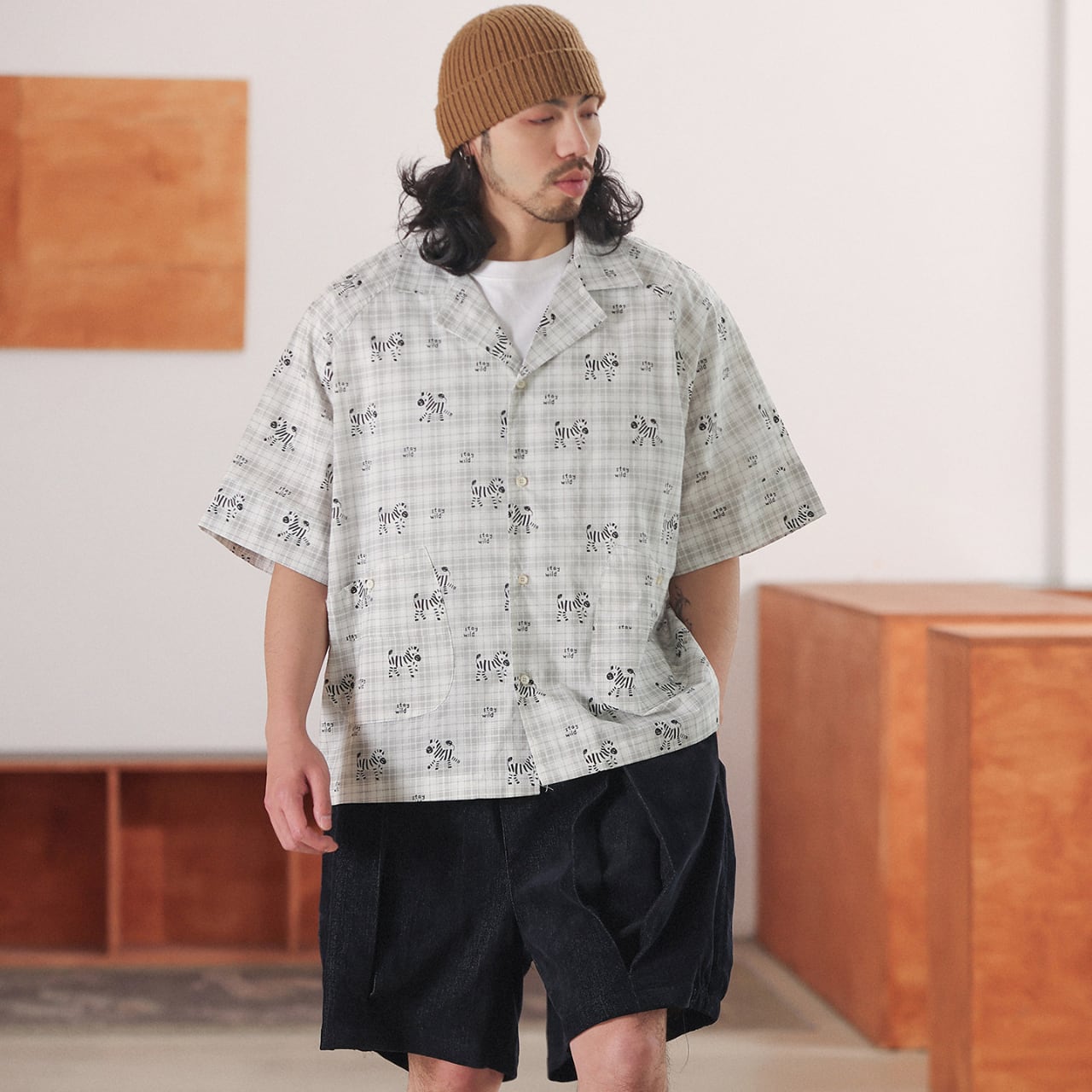 しなやかなコットン素材に、さりげないゼブラ柄を落とし込んだオープンカラーシャツ。