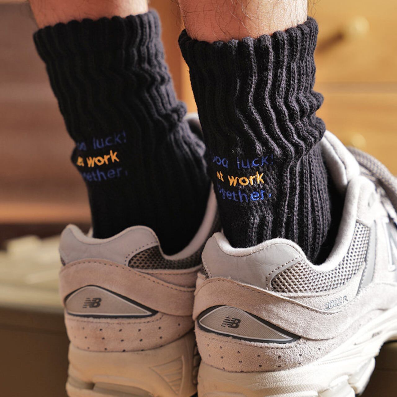 さりげない刺繍ロゴがアクセントになるリブソックス。