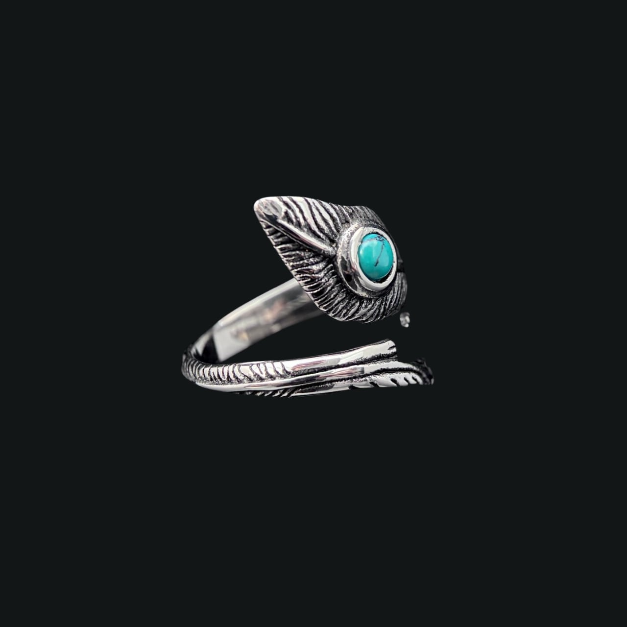 フェザーモチーフにターコイズを添えた、存在感あるヴィンテージライクリング。