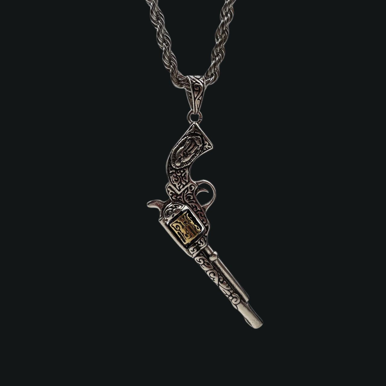 古典的なリボルバーモチーフを落とし込んだ、鋭さ漂うネックレス。